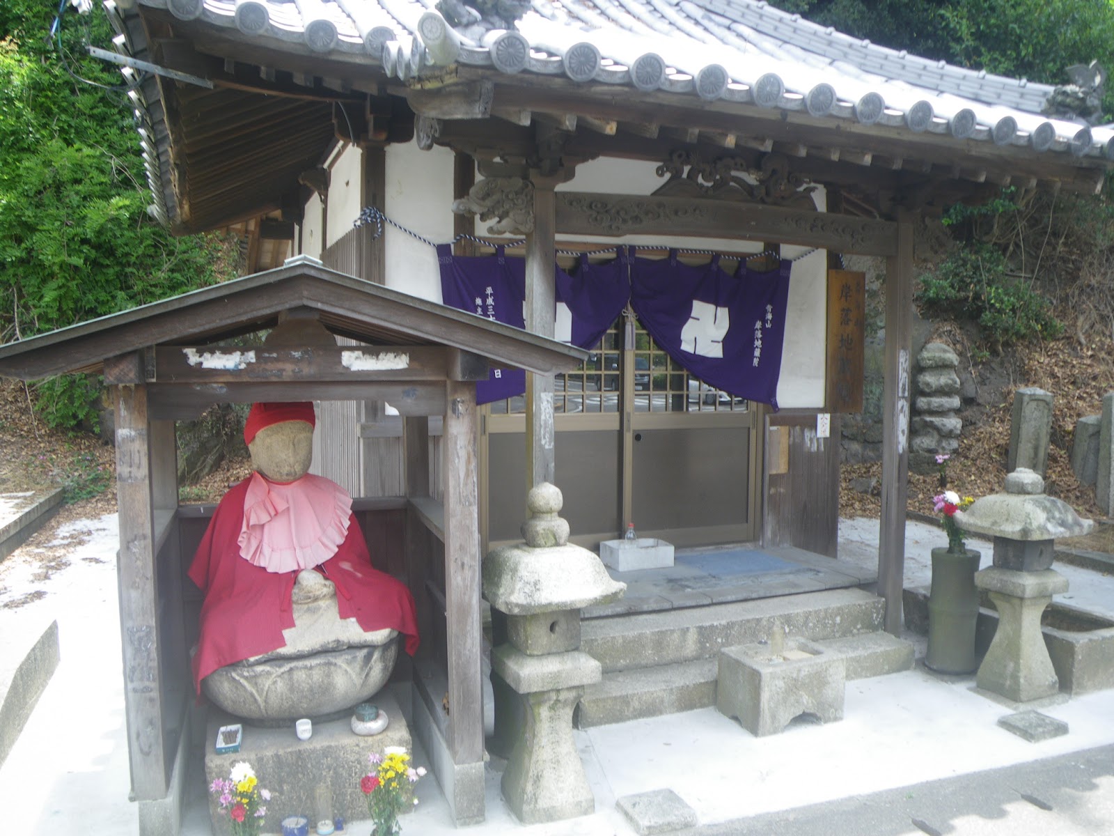 道を進み、JR宇多津駅の駅前通りが県道にあわさるT字路に地蔵堂がある。地蔵堂の裏手は独立丘陵である青ノ山(標高224m)となっている。