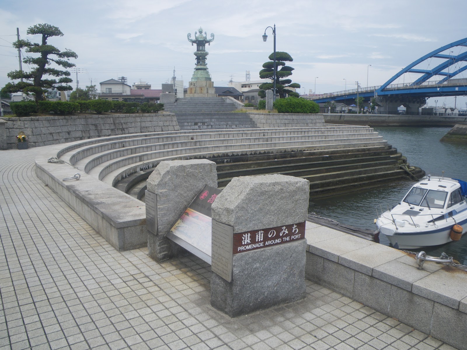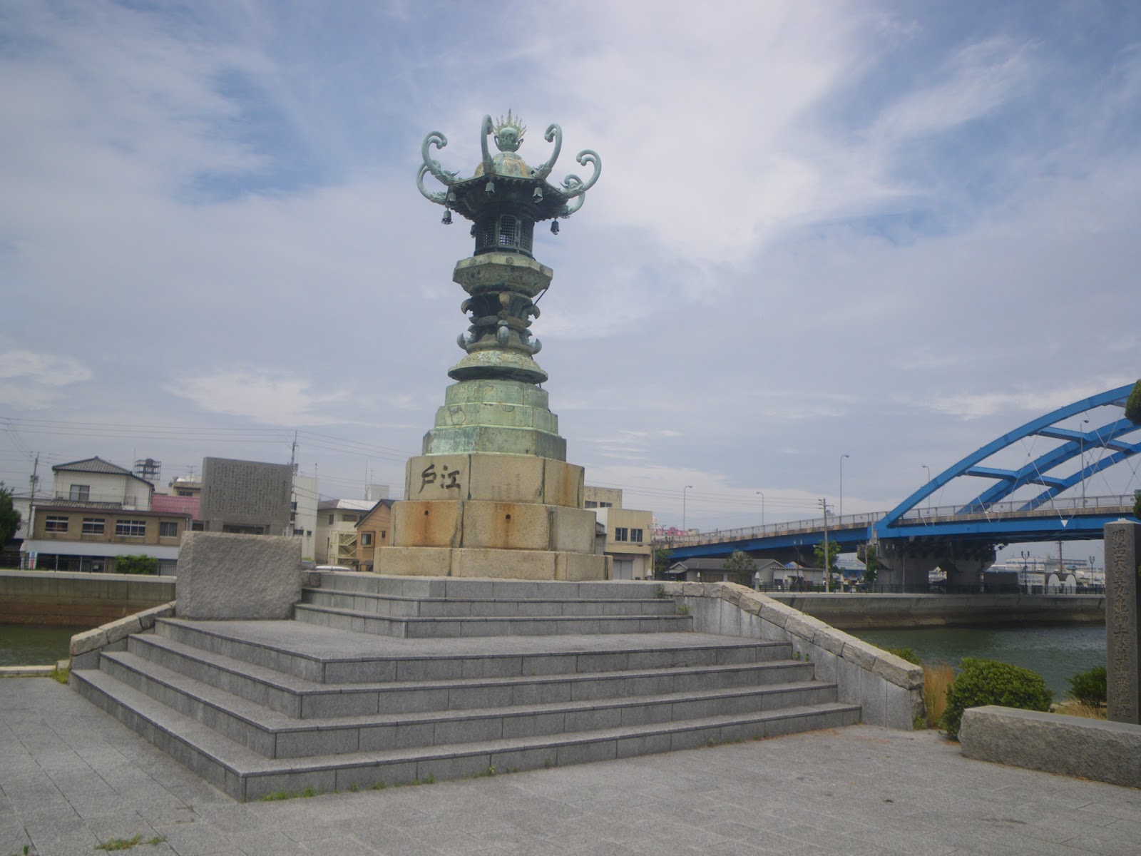 予讃線・丸亀駅、更にみなと公園西側の道路脇にたつ常夜灯を見遣り丸亀港へ。港の太助灯篭は予想以上に大きくすぐわかった。傍にあった案内には「金毘羅講燈籠 丸亀 は金毘羅参詣客の上陸地で、門前みなととして栄えてきた。金毘羅講寄進のこの青銅燈籠は、天保九年 (一八三八)の製作で、高さ五・二八メート ル、蓮華をかたどり八角形である。
