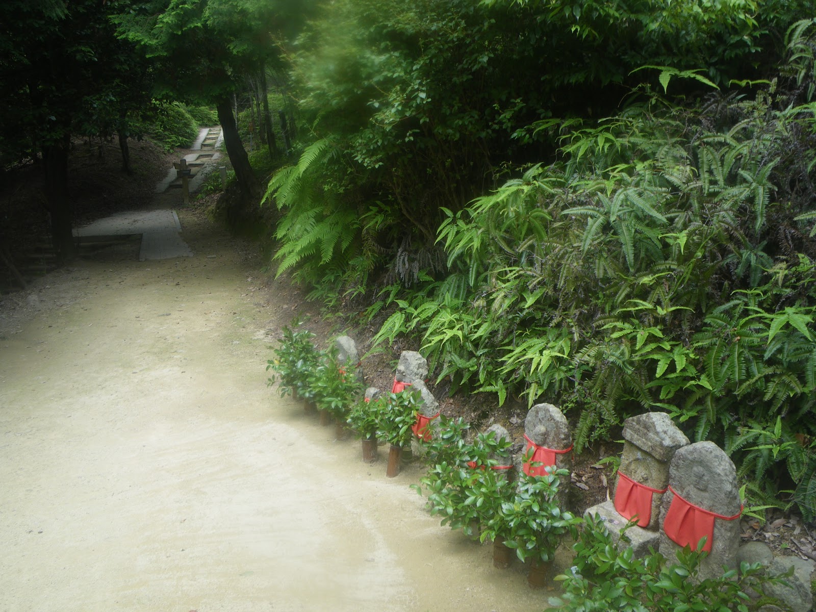 ふたつに分かれる道の分岐点に慈悲の鐘。「こころの鐘」と読むようだ。比較的新しいよう。平成4年(1992)建立とのこと。和泉式部の絵巻風パネルの近くにあった「和泉式部歌塚案内図」にあった境内の地図に拠れば、左に折れると円教寺会館、妙光院、そして西坂参道へと進むよう。右に折れ、仁王門への参道へと歩を進める。