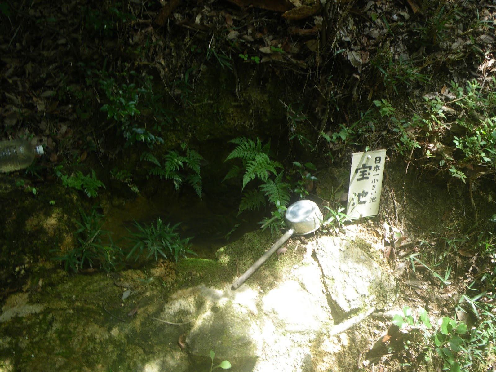 三丁標石から直ぐ、道脇に「宝池 日本一小さい池」とある。