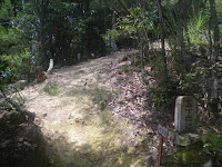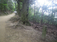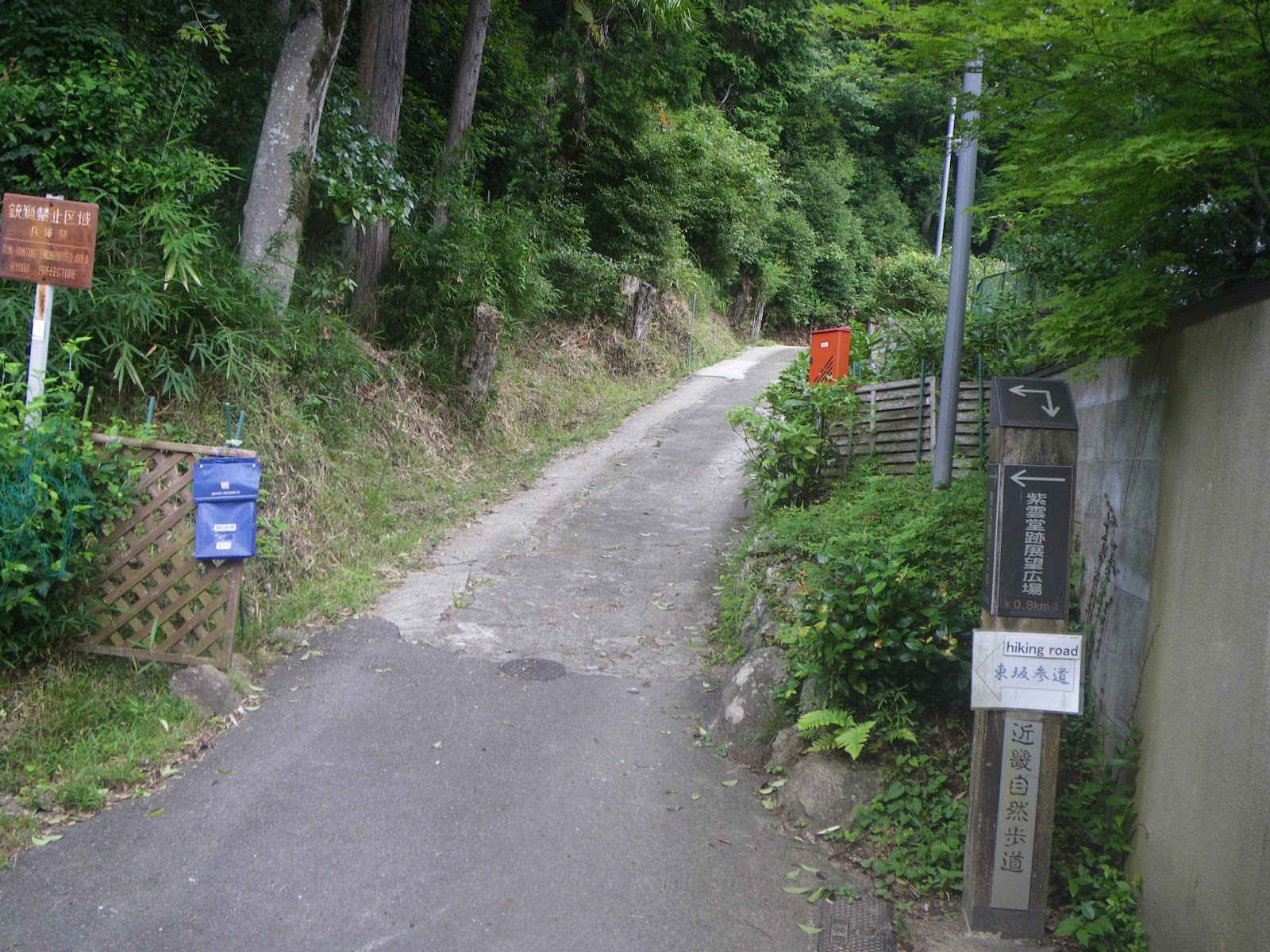 東坂参道の案内の傍には「紫雲堂跡展望広場」の案内もある。紫雲堂跡が有り難いのか、展望広場が有り難いのか、どちらに重点を置いた案内か不明だが、ともあれ東坂参道の案内に従い左折し山道に入る。