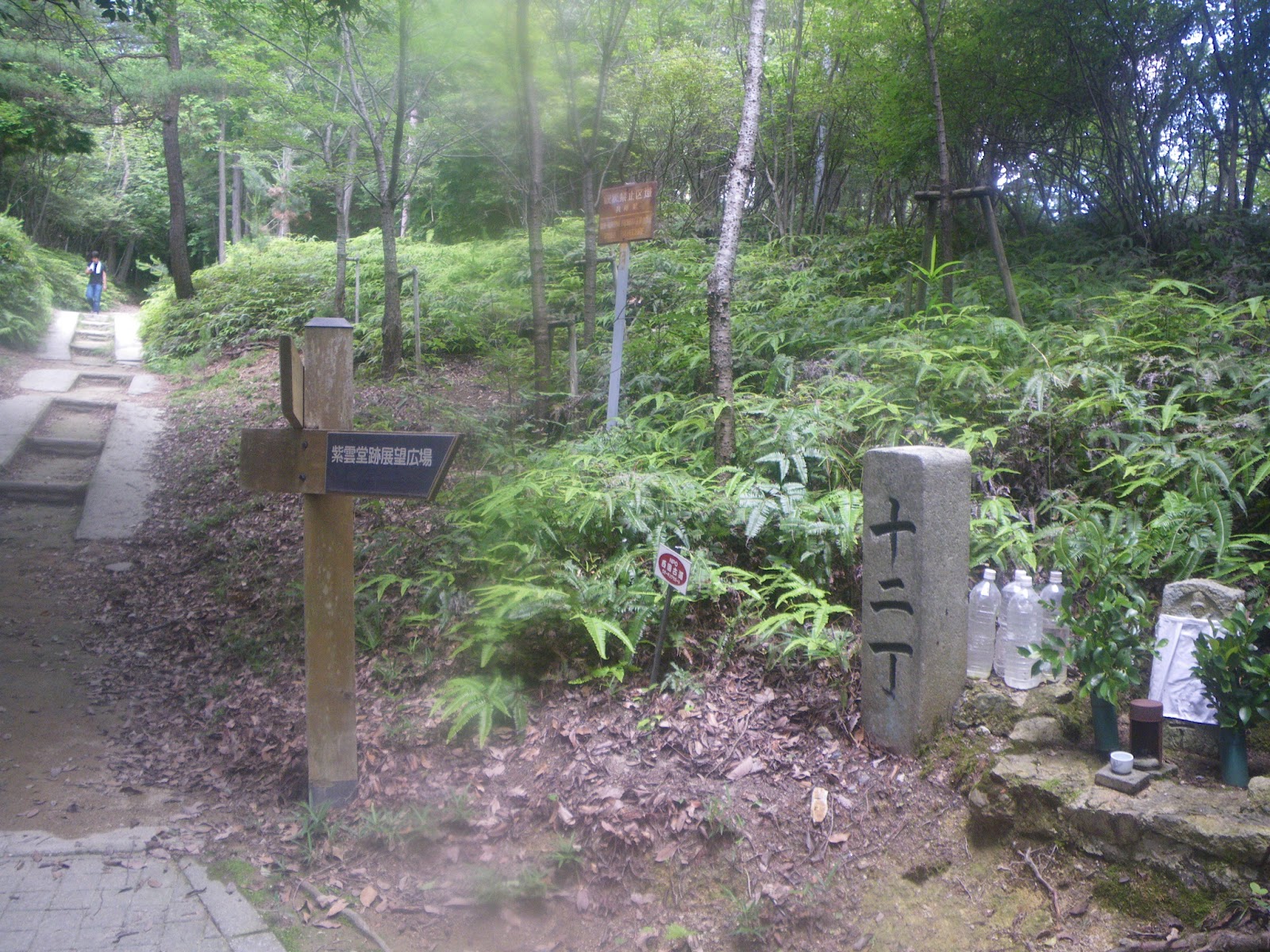 紫雲堂跡を離れ、道脇に立つ石仏を見遣りながら進むと十二丁の標石が立つ。