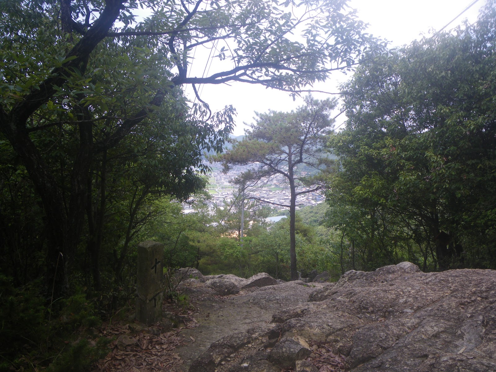 国土地理院の地図でチェックすると、登山道と思しき実線がふたつ描かれている。ひとつはロープウエイ乗り場の近くから圓教寺まで。もうひとつはもう少し西に描かれている。標高もそれほど高くない(標高371m)。ということで、急遽予定を変更し登山道を上ることにした。