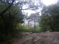 九丁の辺りから山肌が岩場の趣き。十丁標石の辺りでは尾根筋が一面に岩場となる。
