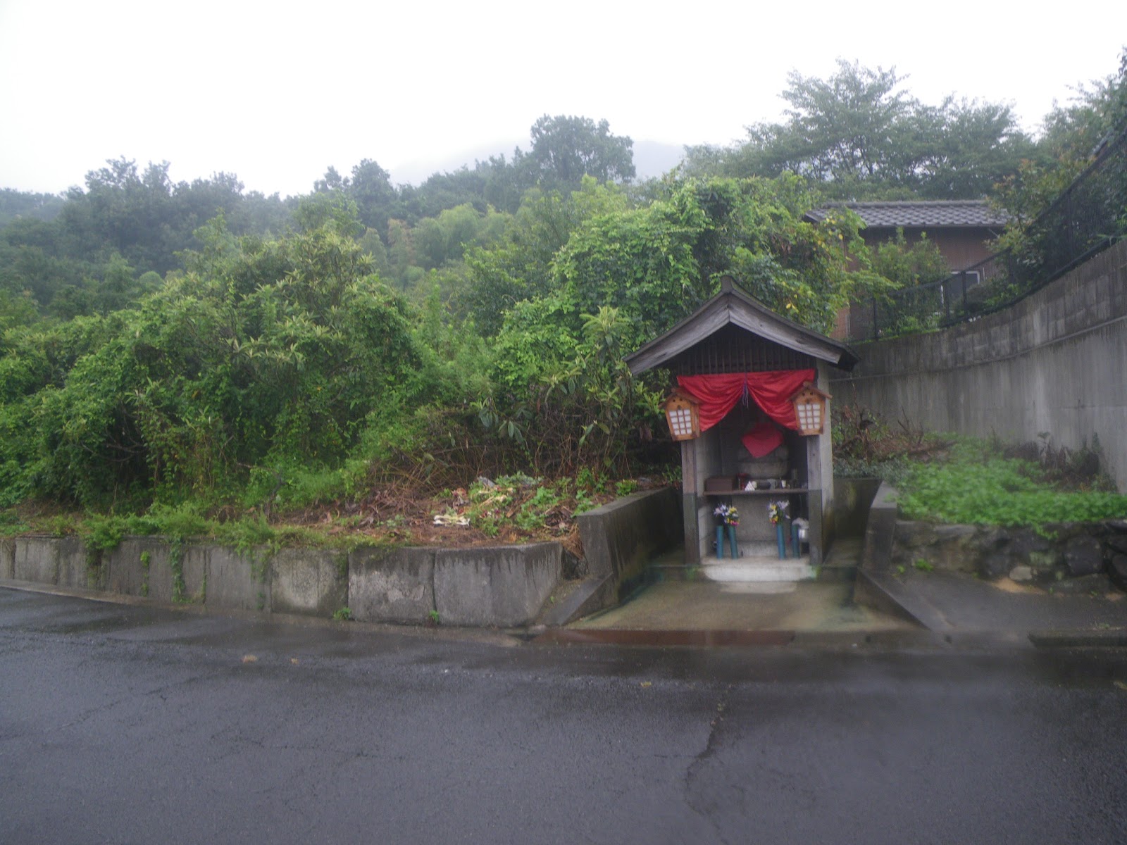 道を折れて進むと結構大きな車道と合流。これが遍路道?と、少し不安になるが、しばらく進むと地蔵堂があった。桑崎池の先で遍路道は地蔵堂前を通る、といった記事もあり、オンコースと一安心。