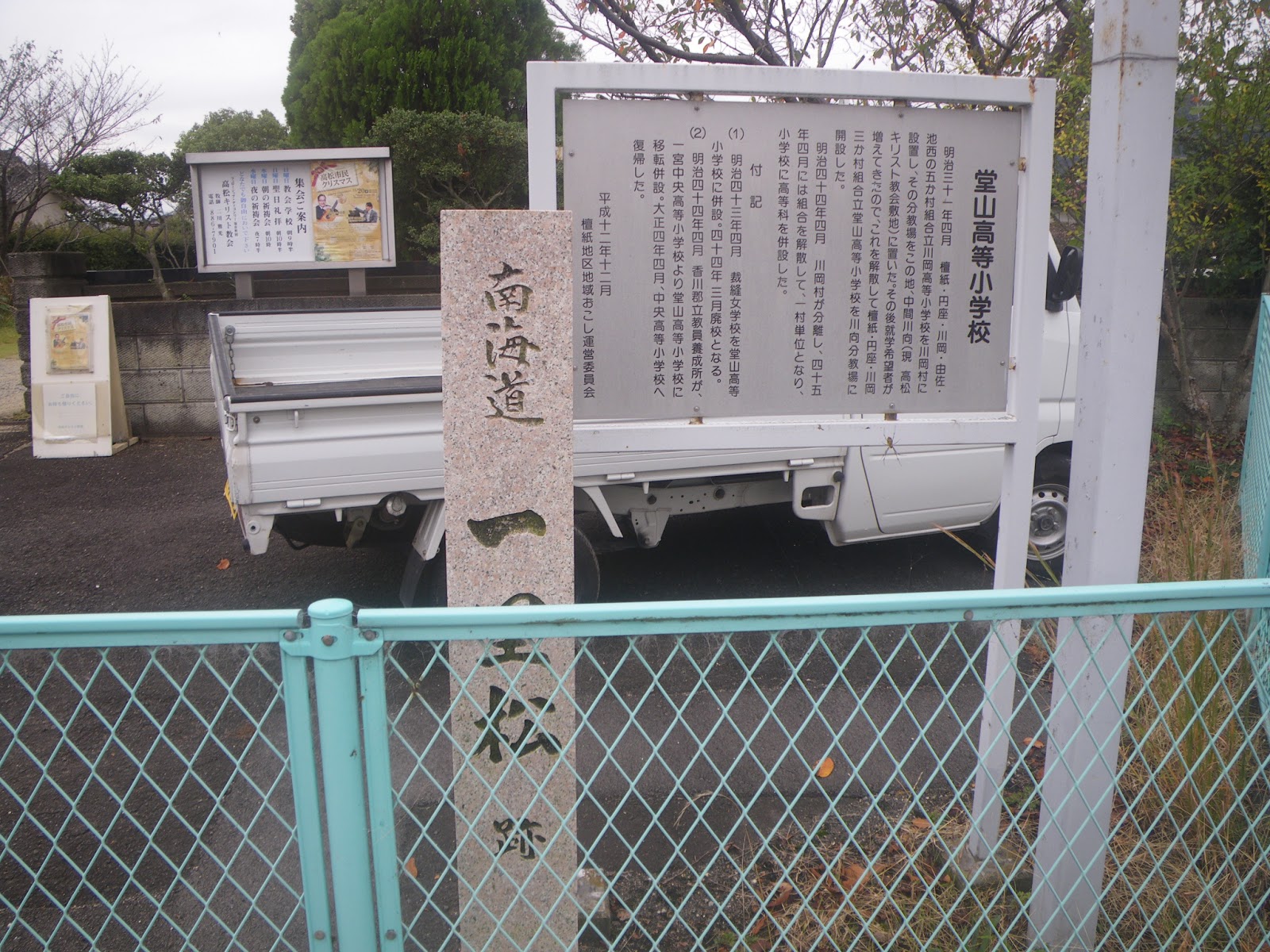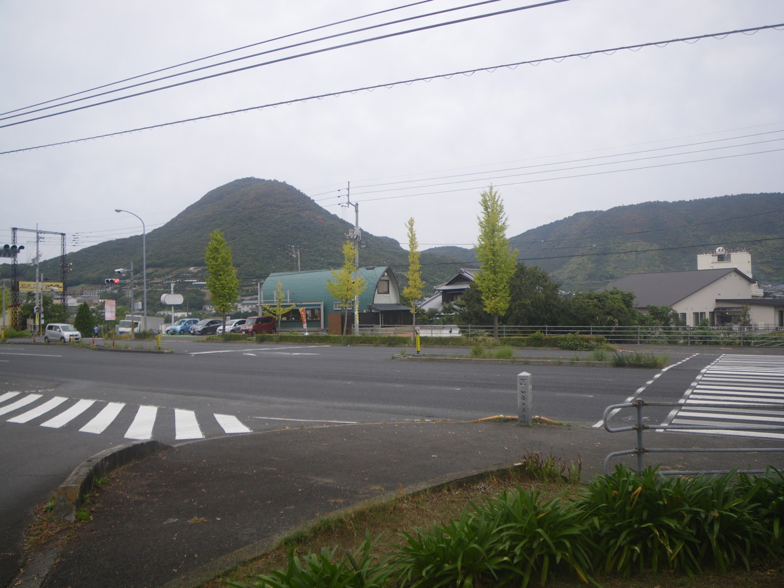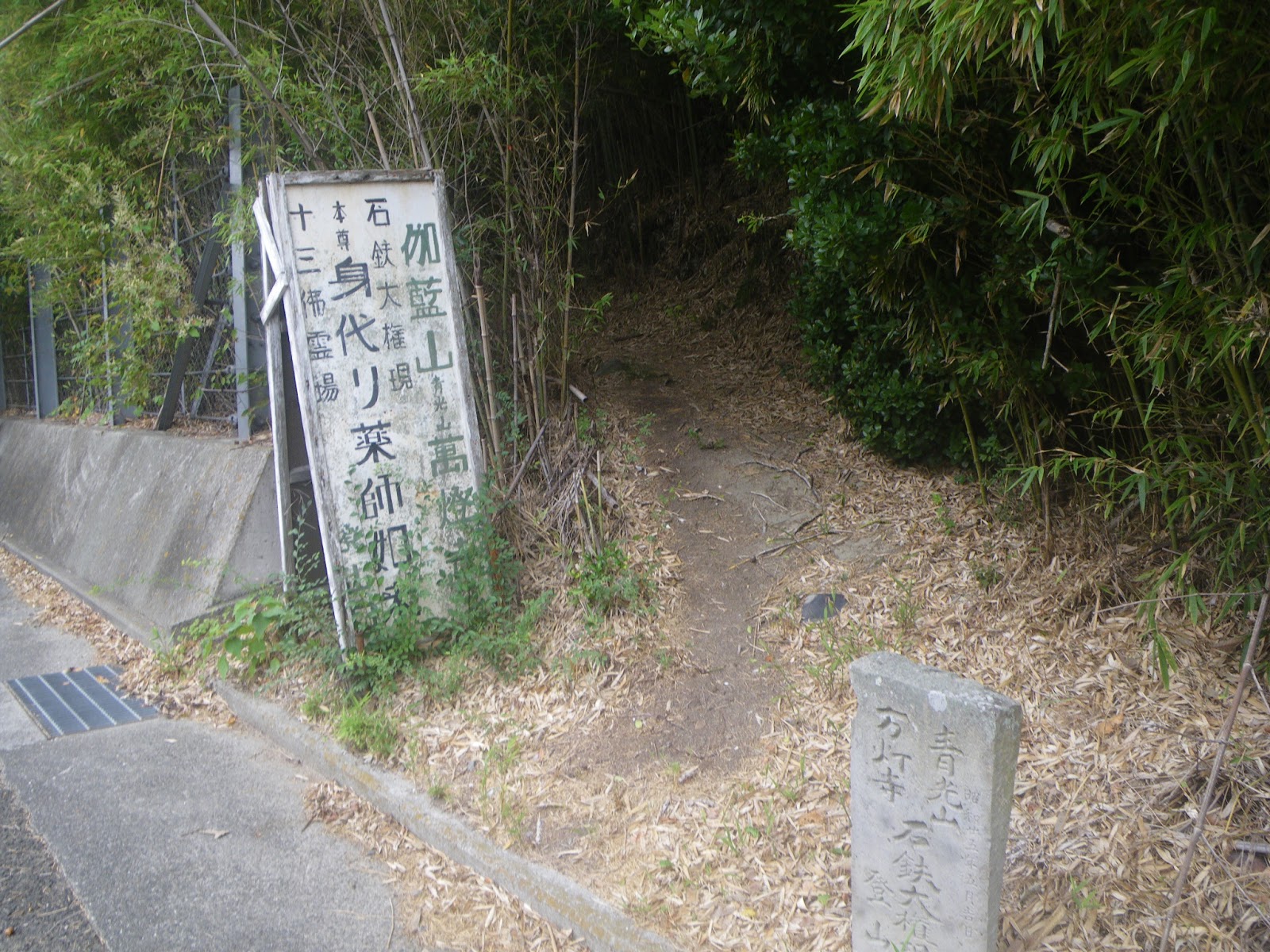 道の左右の未舗装箇所には結構な数の車が停る。屋島寺なのか屋島のお山なのか、ともあれ車をここまで寄せて屋島へと向かうようだ。道はその先で石段となる。