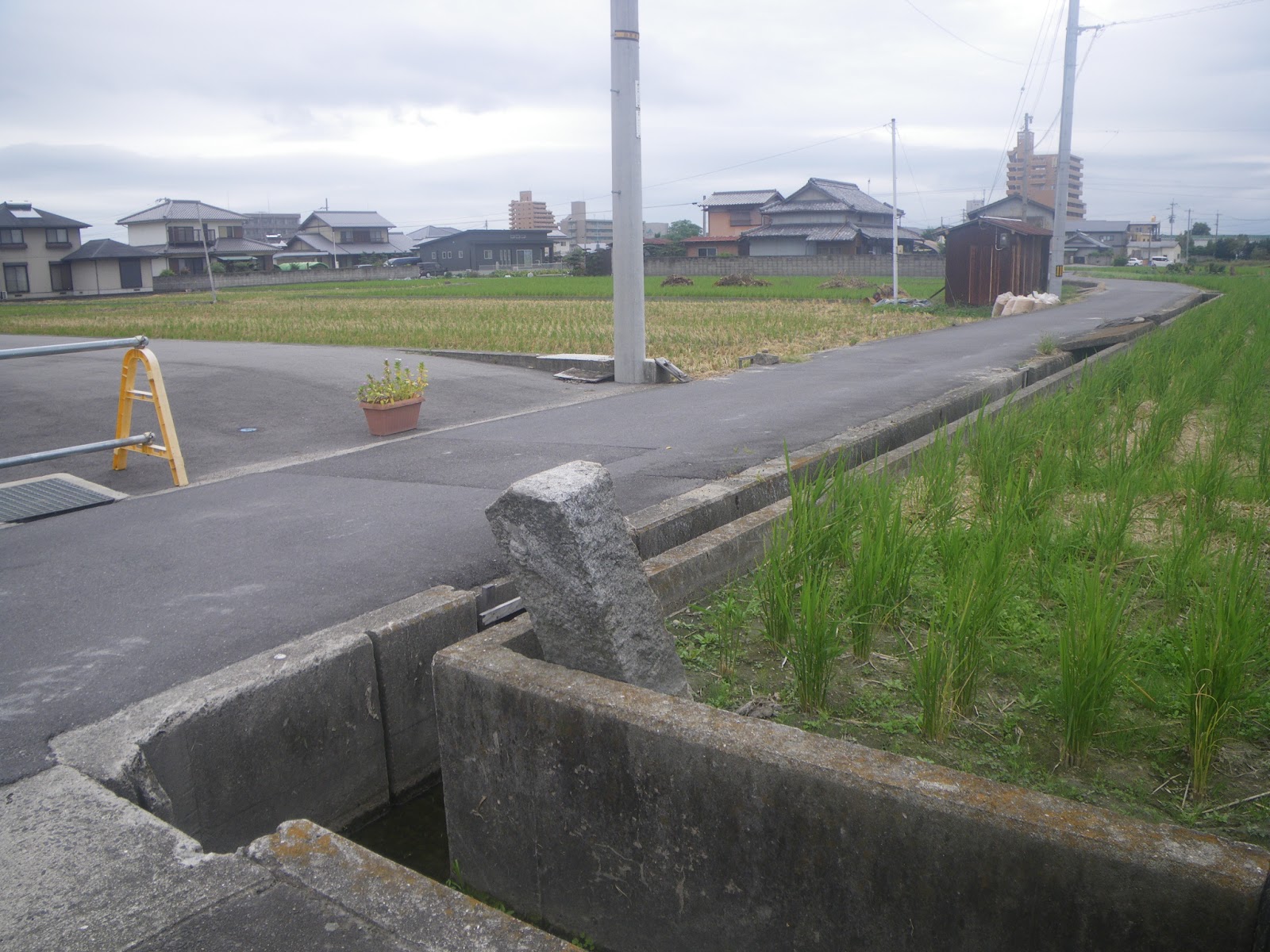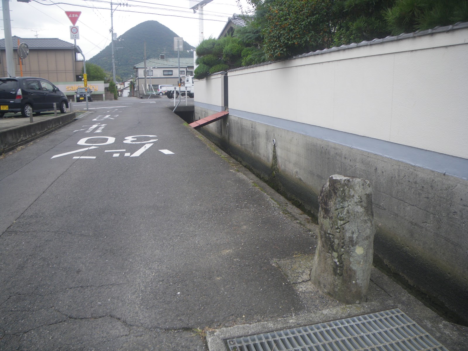 右折するといっても現在、そこは道と言うか民家の間の水路といったもので、特段道はない。とりあえず水路脇を進み県道172号に合流。