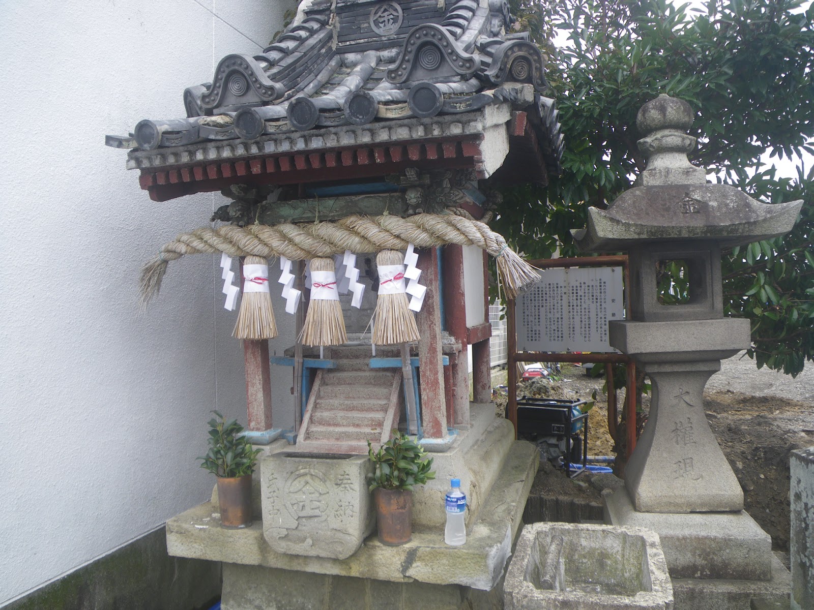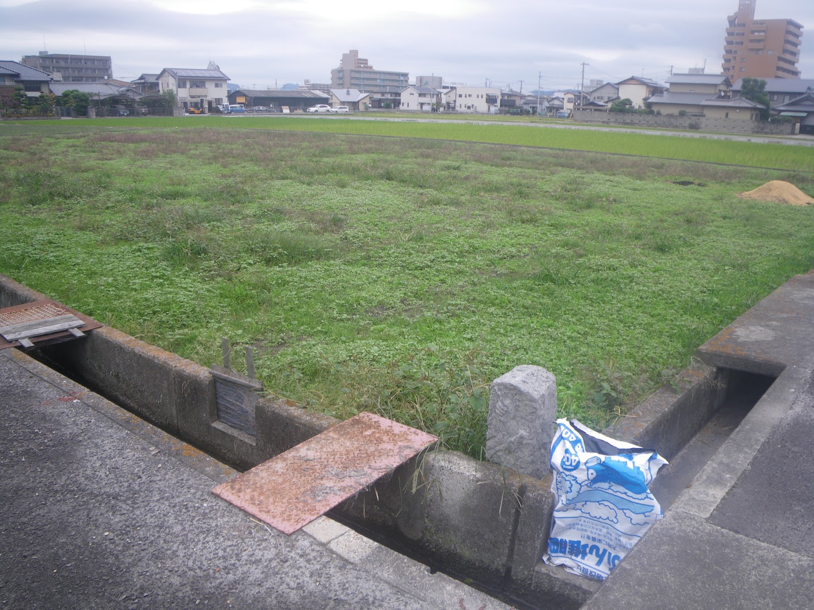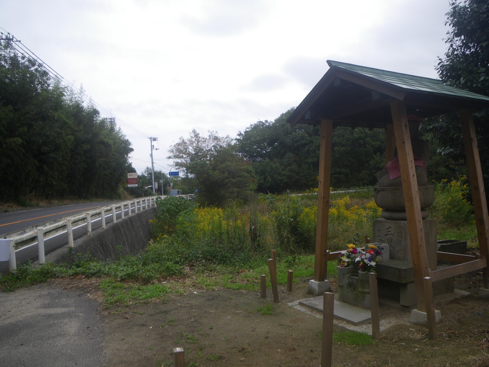 次のルート目安は太田天満宮だが、古い遍路道資料にある標石から北東に進む道はない。ここから先天満宮までは標石もなく、どうしたものかとあちこち彷徨うと、標石から少し南に戻った水路脇に遍路タグがあった。