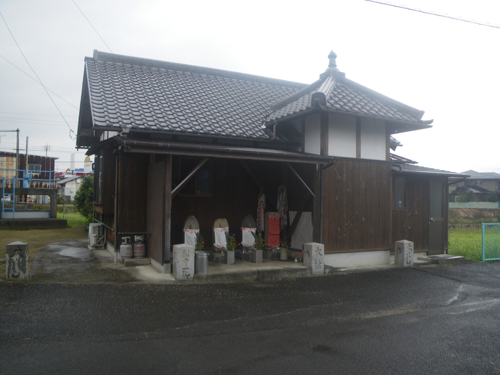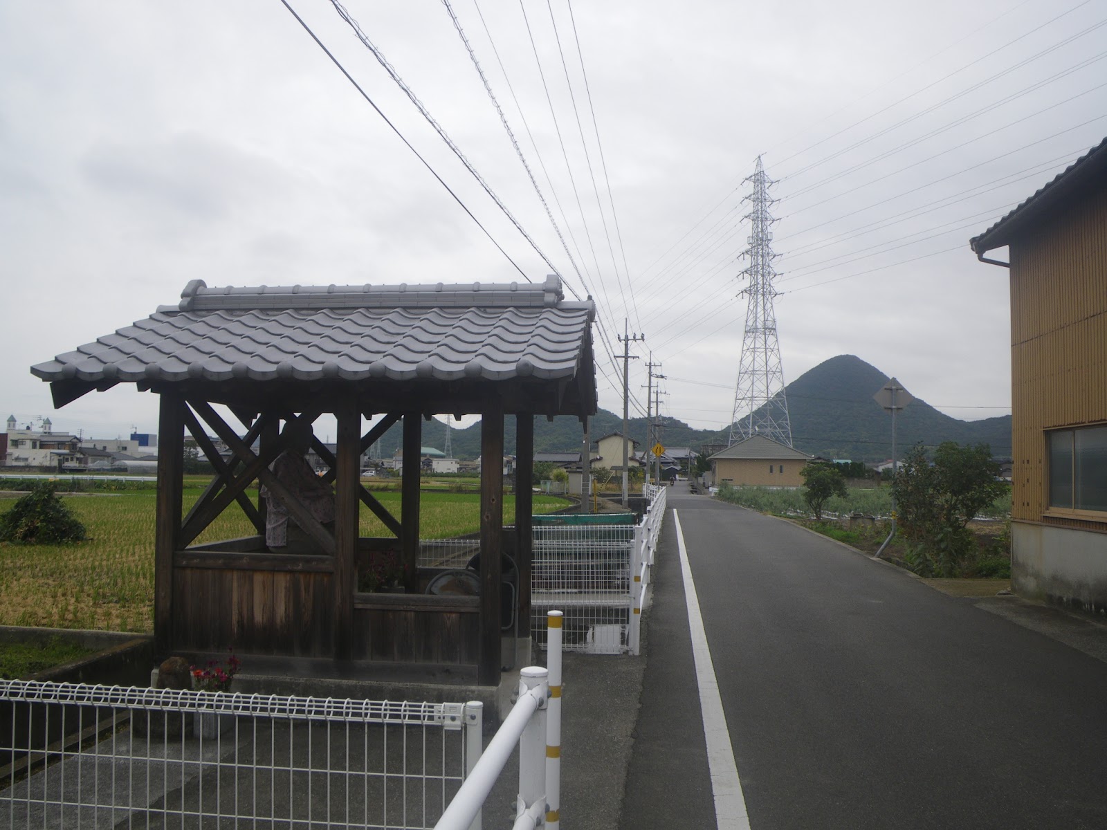北に進み、琴電潟元駅と、如何にも往昔の干潟の趣を残す駅の東側にある踏切を越え三叉路を北東に進む道をとる。しばらく進むと県道14号と交差。遍路道はここで左折し県道14号に乗り換えて北に進む。