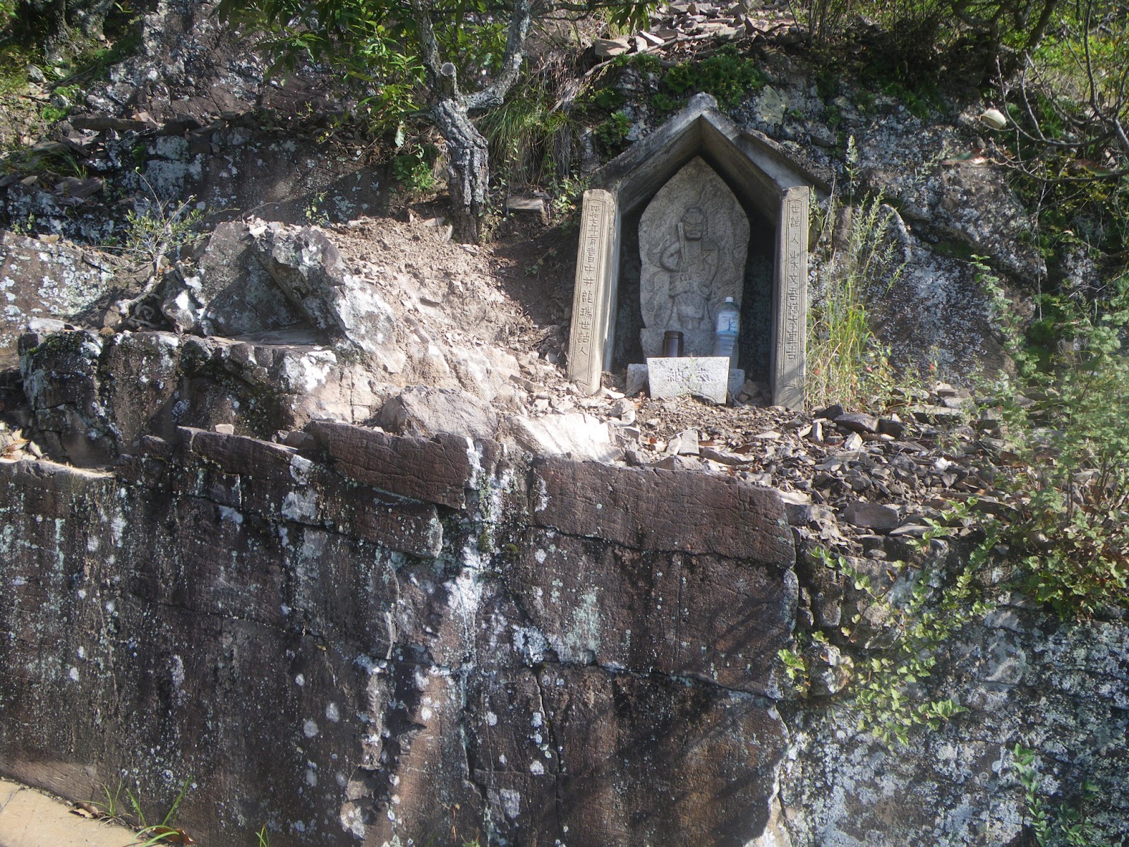 因みに屋島の美しい台形姿を構成するのは山頂部の堅い讃岐岩質安山岩は固く侵食に耐え元の姿を留める一方、中腹より下の花崗岩質は削れられなだらかな斜面となった故、と言う。 畳岩の直ぐ先には2基の舟形地蔵が並ぶ