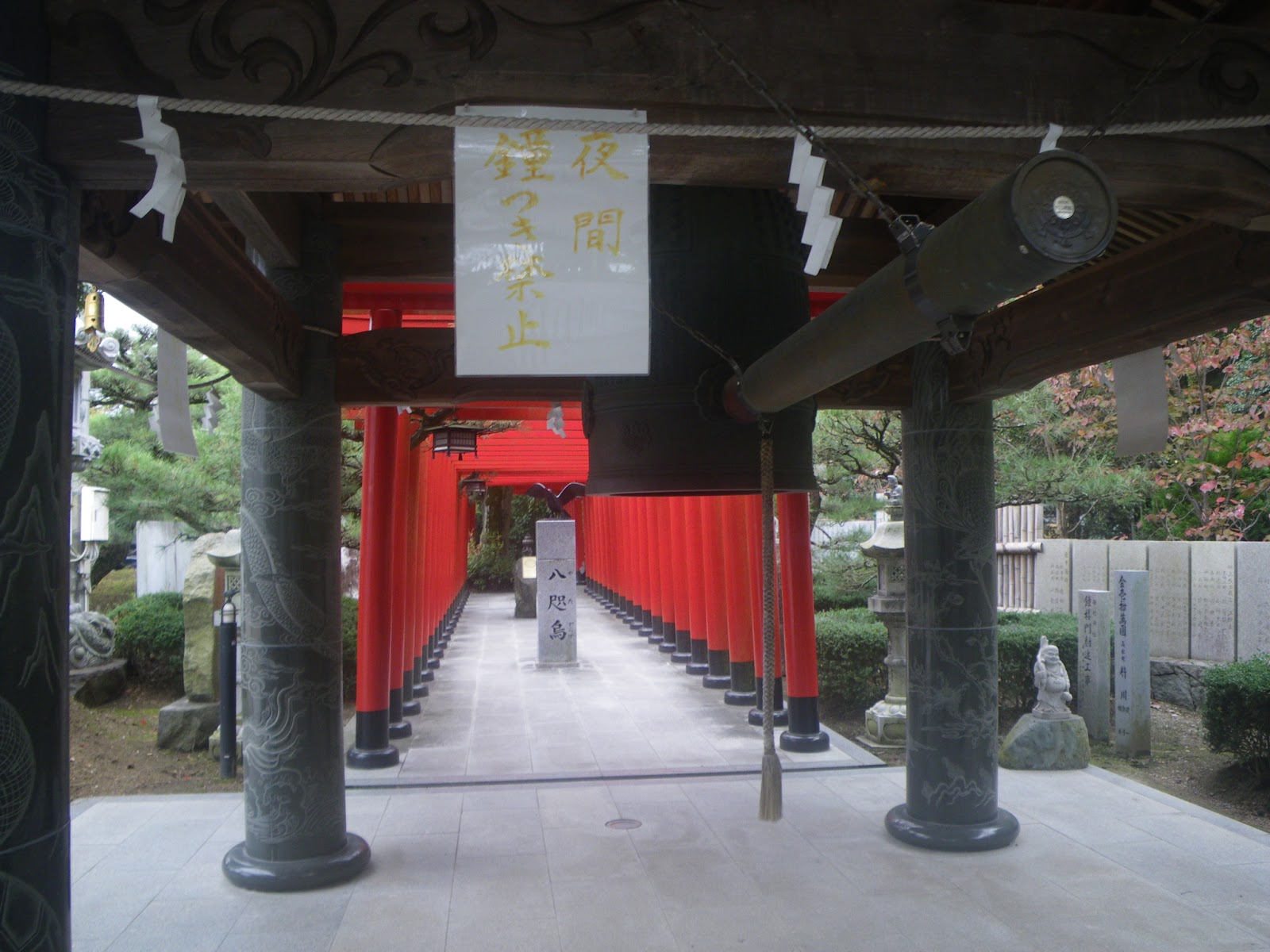 一宮寺への遍路道は、順打路である八十二番根香寺からのふたつのルート、香西口ルートと鬼無口ルートのいずれの道を辿っても、また逆打ルートである七十九番天皇寺から八十一番白峰寺、八十二番根香寺を経て八十番国分寺に至り、そこからこの八十三番一宮寺へと辿る遍路道をとっても共に境内西側に至る。一宮寺の正面仁王門は境内の東側にあり、順路は寺の北西角、大師堂脇から入ることになるし、逆打ちルートは西門(裏門)から境内に入ることになる。