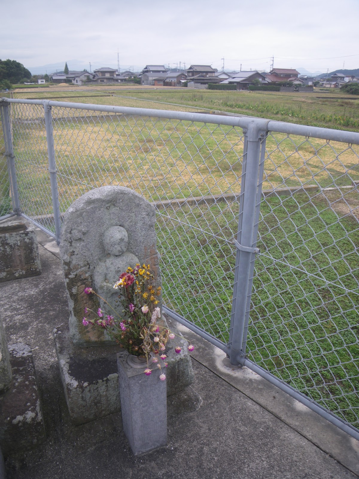 野田池から先の遍路道もはっきりしない。古い資料には野田池からまっすぐ北に300m進み右折。そこから東に進み、比較的大きな道を越えると標石があり。そこを左折し北へと向かい松縄東公園の東側に出るとある。松縄東公園への途次には2基の標石がある、とのこと。