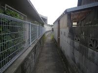 指示にある左は一見すると民家の敷地のようにも見える。が、何となくフェンスに沿って道らしき雰囲気もあり、標石の指示に従い左に折れる。高松南高等学校との境の細路を進む。