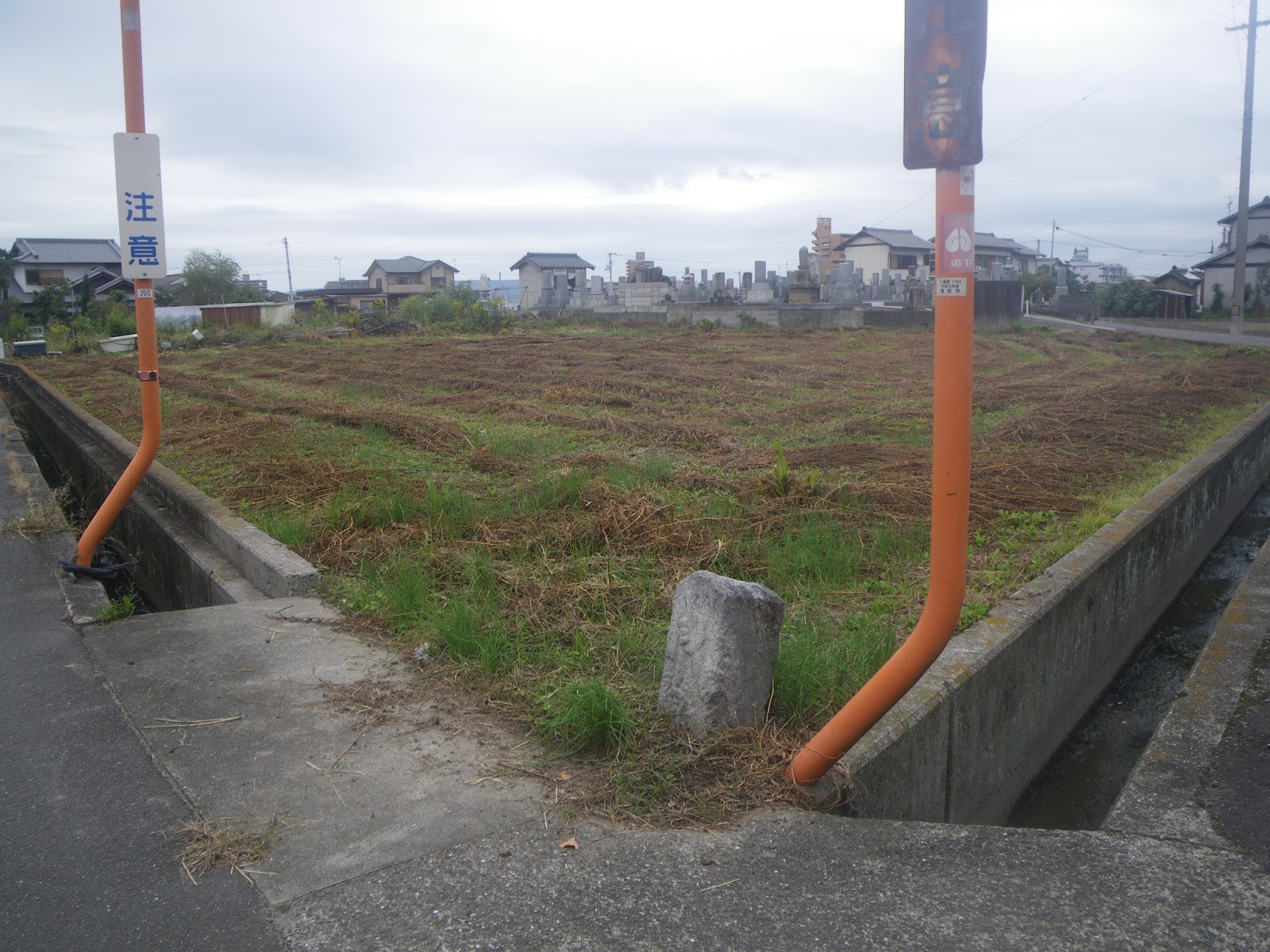 県道172号と水路合流点の標石