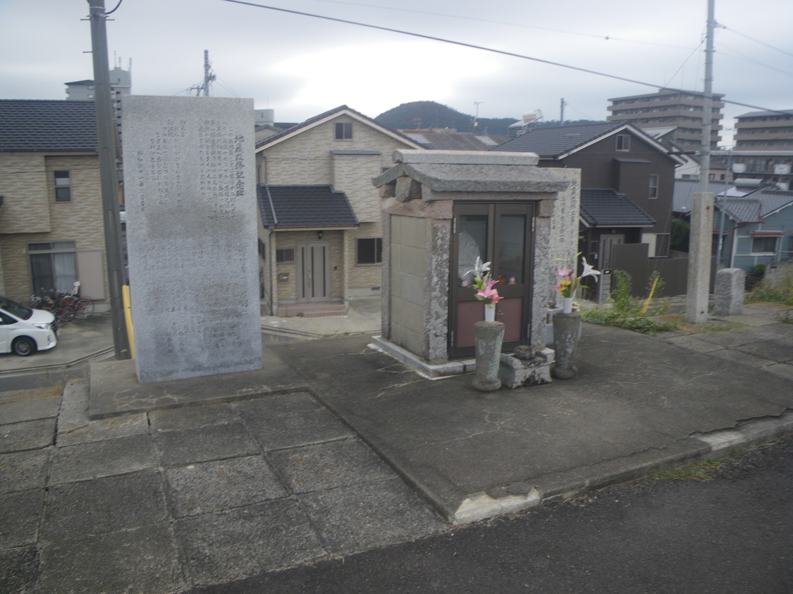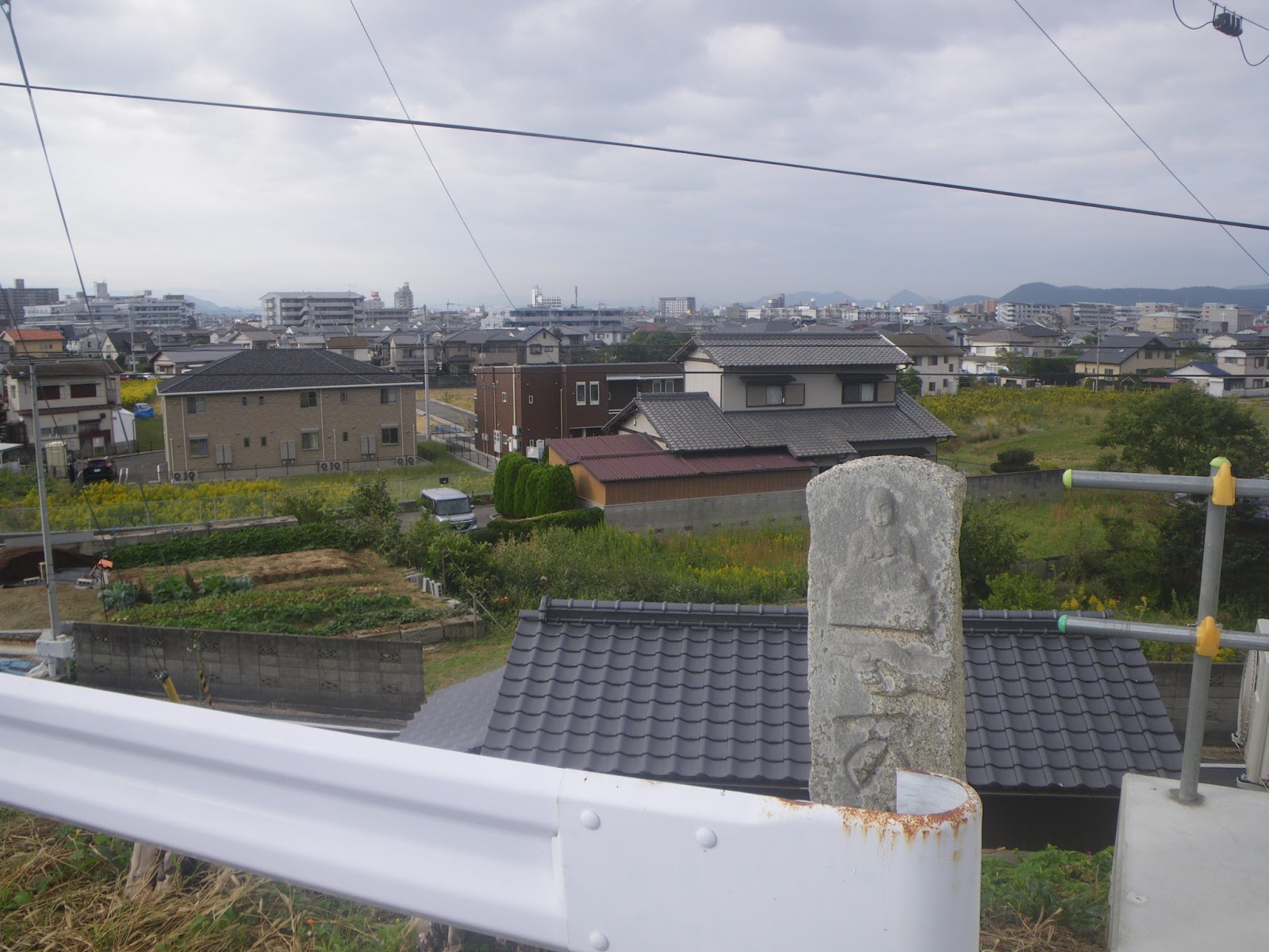 県道を越えた遍路道は北東へと上る、と古い資料にある。が、現在ではこの辺りは宅地開発されており遍路道は消えている。
