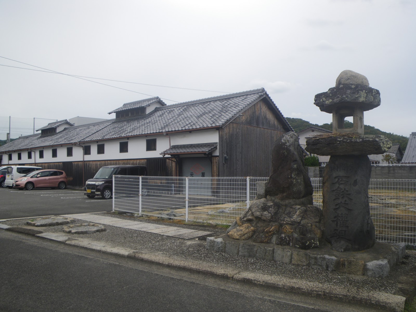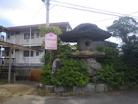 地蔵寺を過ぎると志度寺は指呼の間。街並みの中を続く道を一直線に進むと志度寺参道口に。参道手前で遍路道と交差する大きな車道の西側、上述の「もとや醤油」酒蔵の前にこれも大きな石灯籠。市指定文化財に指定されている雲附山に祀られている石鎚神社への奉献の自然石灯籠。ここが雲附山への参詣道なのだろう。