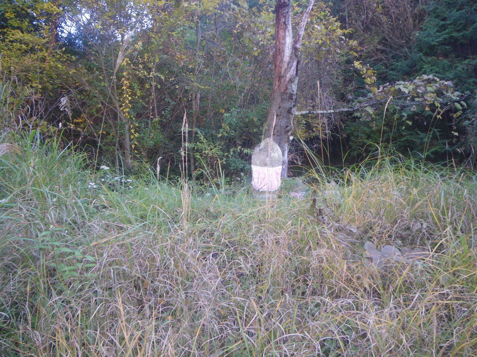 先生墓の傍にも丁石。これも摩耗し文字が読めないが、この先で現れた丁石が六十六とあったので、ここは六十七丁ではあろう。先の「六十八」丁石も、この六十七からの逆算ではある。