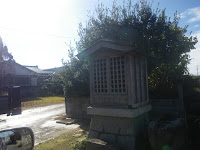ほどなく道の右手に自然石の大きな灯籠があり、その直ぐ先の四つ辻角の建物前に小さな地蔵堂がある。