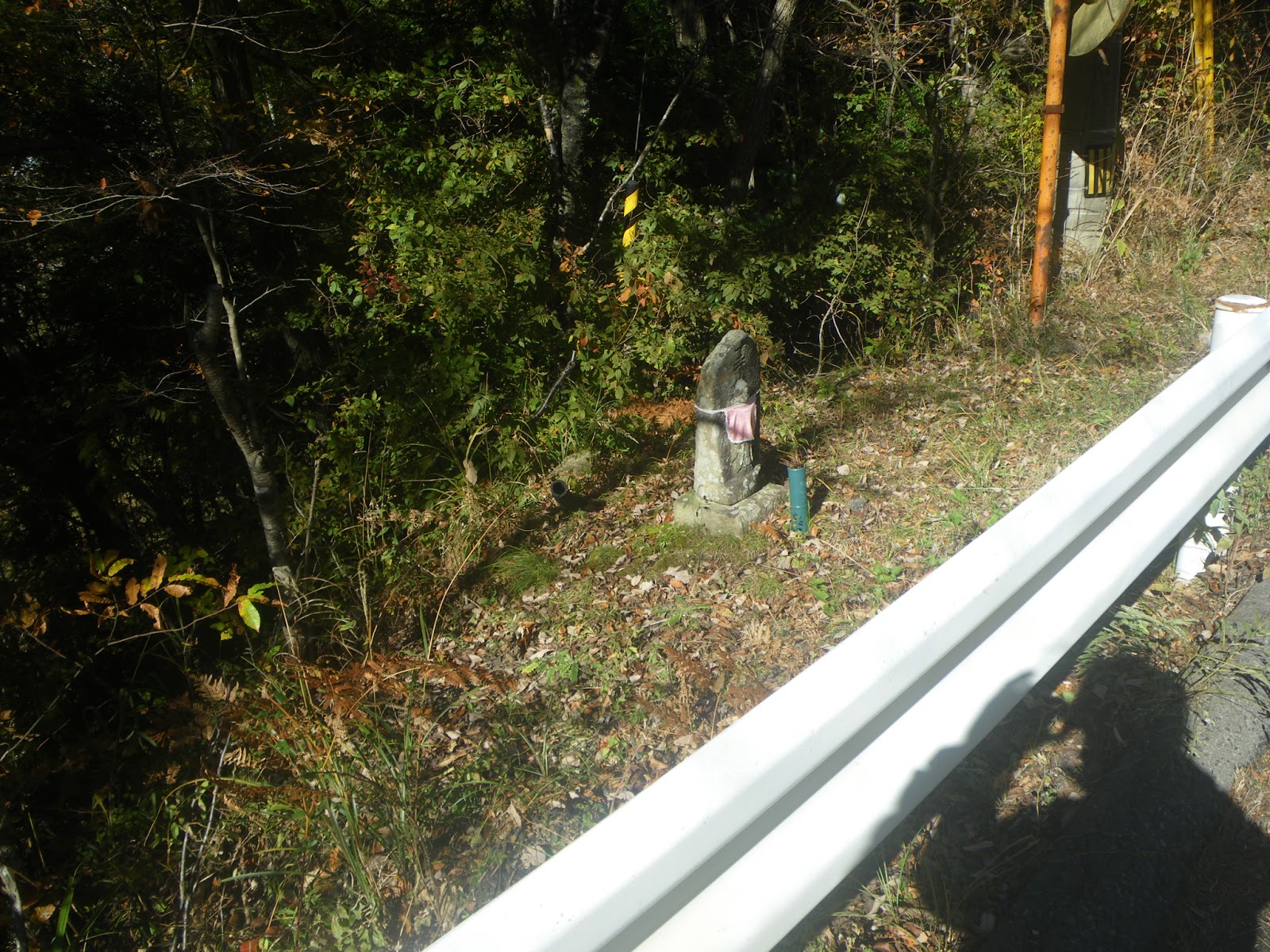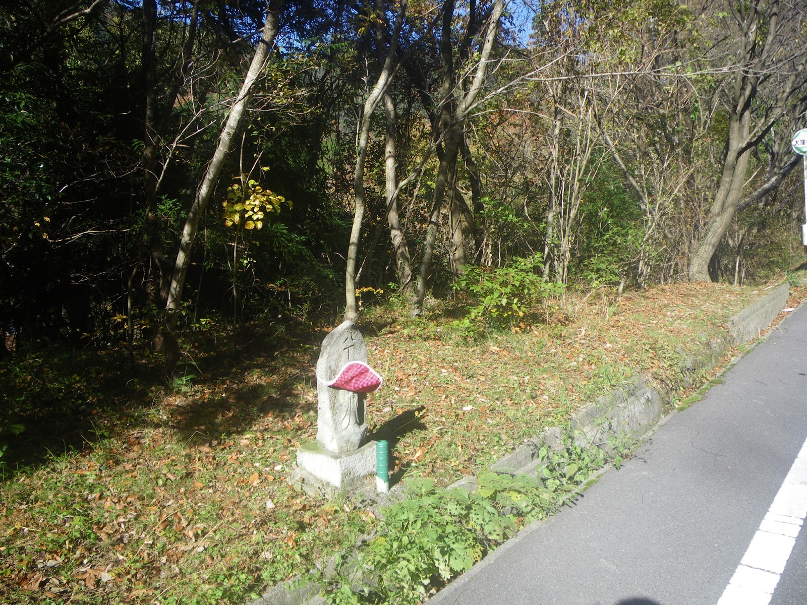 峠の少し手前、道から少し奥まったところに馬の墓がある。舟形石に「明治二」といった文字とともに馬が彫られていた。前述、高地蔵の所でも馬の像が刻まれた馬の墓があったが、馬頭観音ではなく、直接馬が彫られる供養塔は今まであまり見かけたことはなかったように思う。
