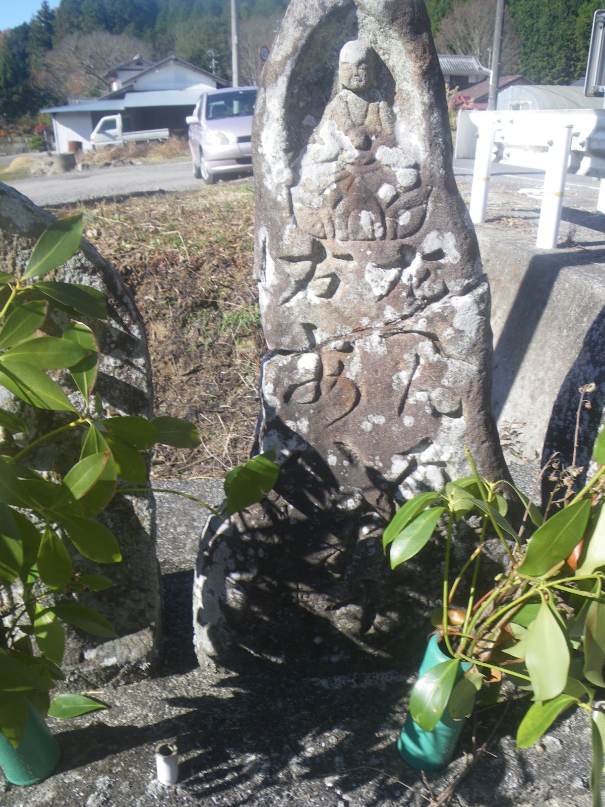 徳右衛門道標の左は舟形地蔵標石。「左扁んろ道 宝暦十四年 當村おくに」といった文字が刻まれるようだ。