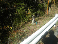 さて、これから先は?お堂の地蔵坐像の台座に彫られた手印は左手、つまりは国道377号と真逆の槇川右岸を指す。お堂の廻りは獣除けの柵で囲まれてはいるのだが、槇川には石橋も架かり、右岸に渡れそう。とはいえ、古い遍路道の記事には丁石は現在の国道に沿って残るとのこと。結局国道筋に戻り、丁石を目安とした遍路道トレースを続けることにした。