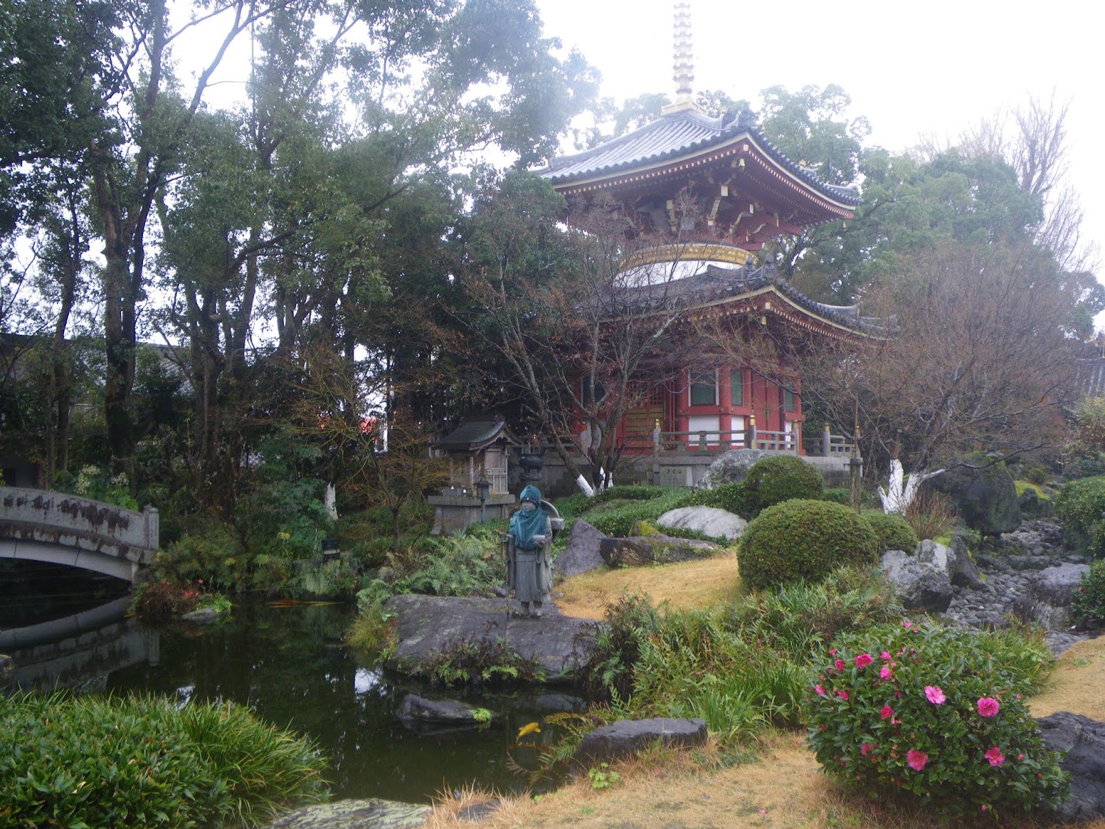 境内に入ると左手に庭園がありその奥に多宝塔が見える。五智如来が祀られる。五智如来とは大日如来、阿しゅく如来、宝生如来、阿弥陀如来、不空成就如来の五大如来のこと。