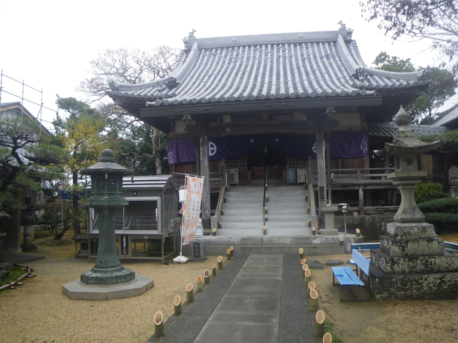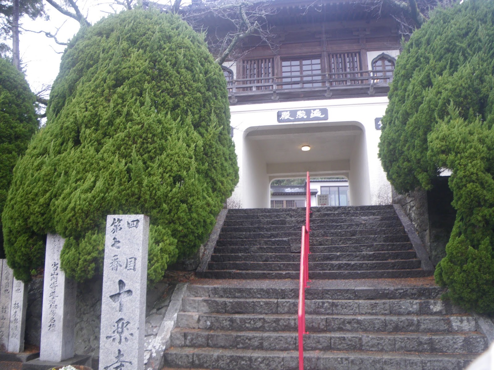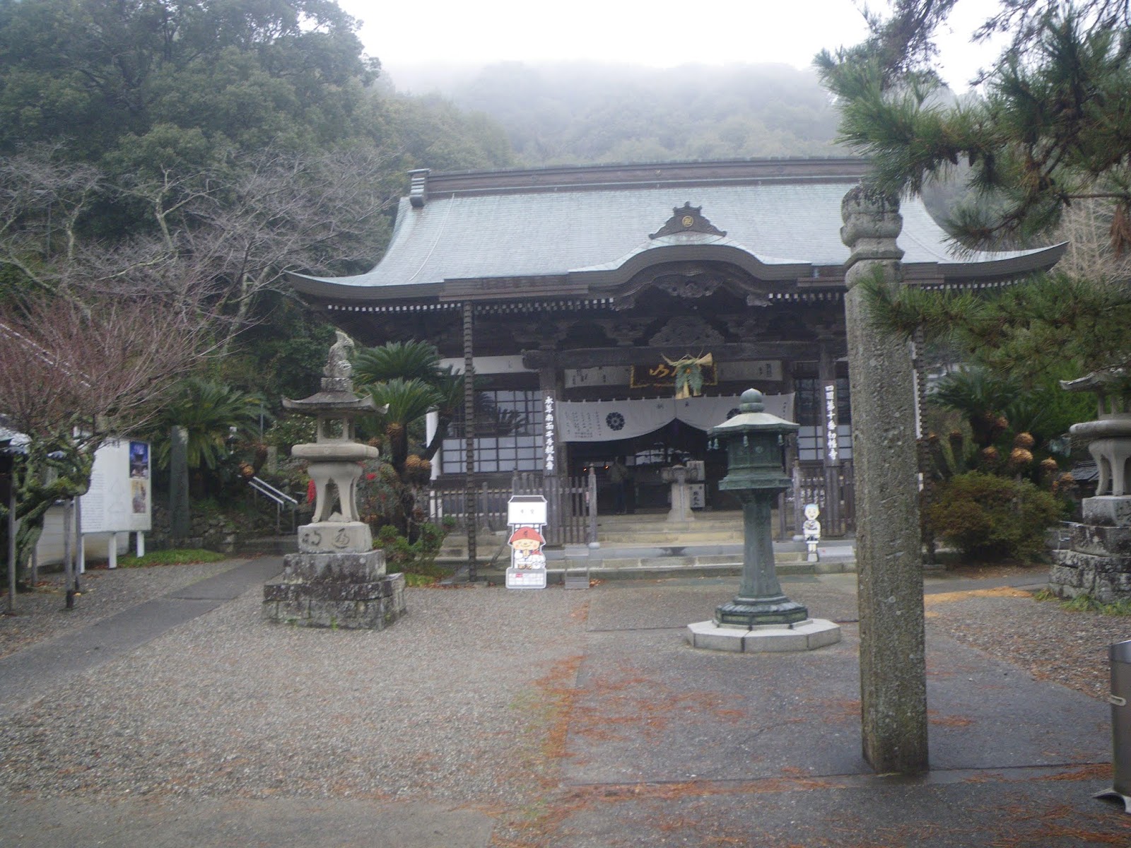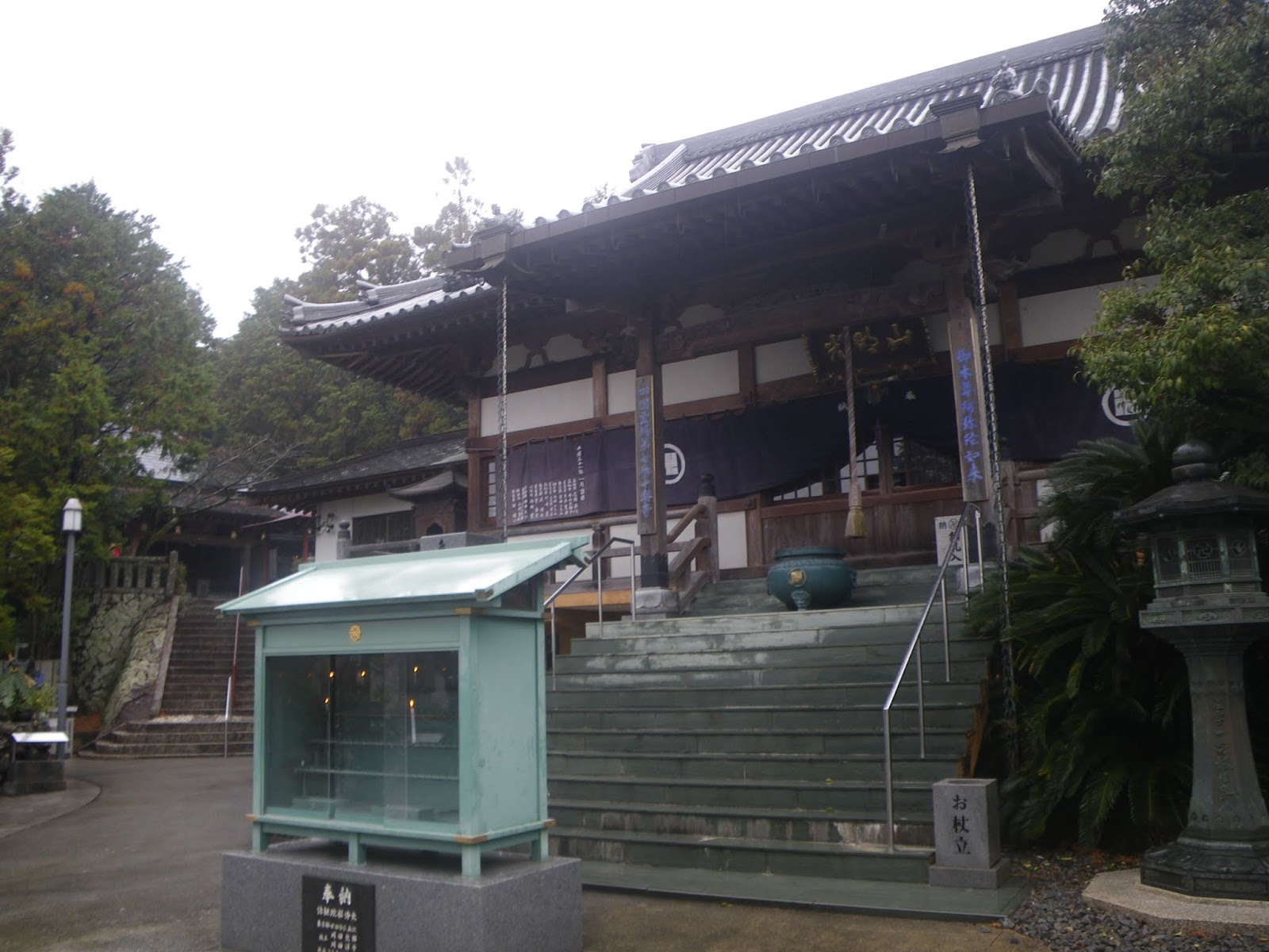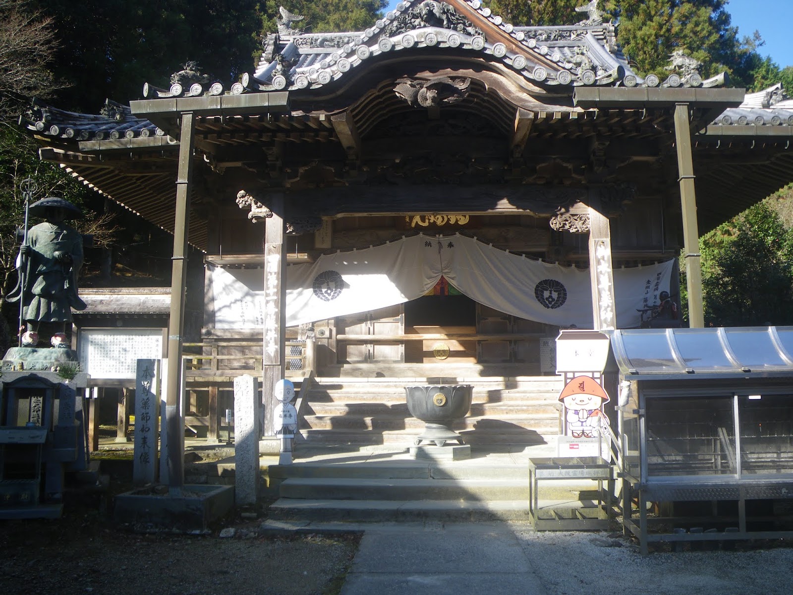 正面に本堂。Wikipediaには「徳島県吉野川市鴨島町飯尾にある臨済宗妙心寺派の寺院。金剛山(こんごうざん)と号する。本尊は薬師如来。なお、四国八十八箇所霊場のうち、寺号の「寺」を「じ」でなく「てら」と読むのは本寺だけである。