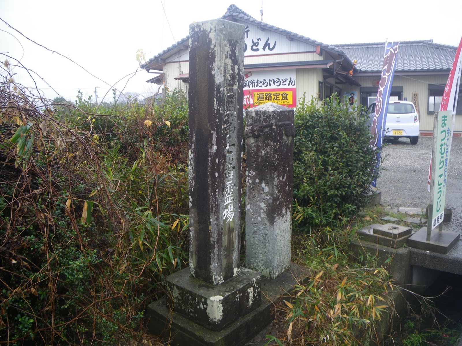 お屋敷前に2基の標石
