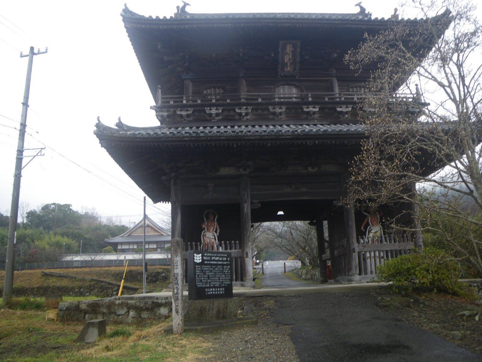 四国霊場中最大の規模と称される山門。高さ13.2m、間口9m、1687年(貞享4年)建立。高さ13mの二重門。昭和46年(1971)に県の有形文化財に指定、この仁王門、かつては阿波藩主の蜂須賀公が月見の宴を張ったとか。