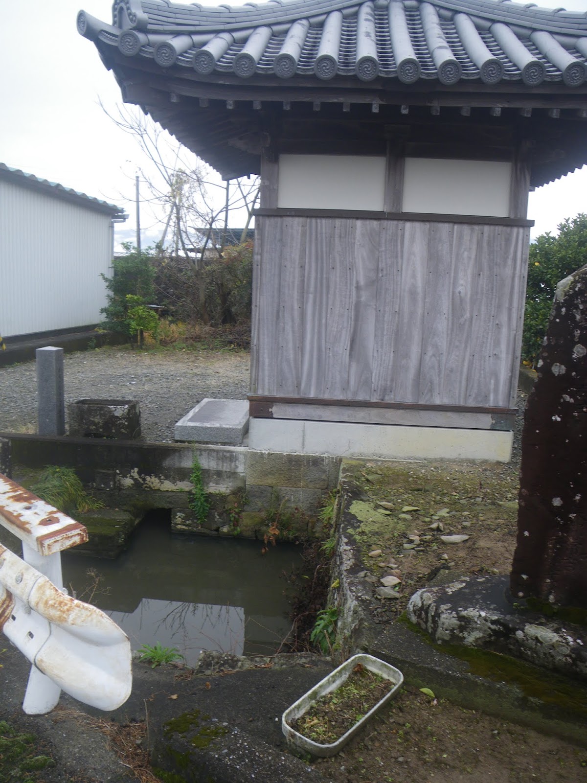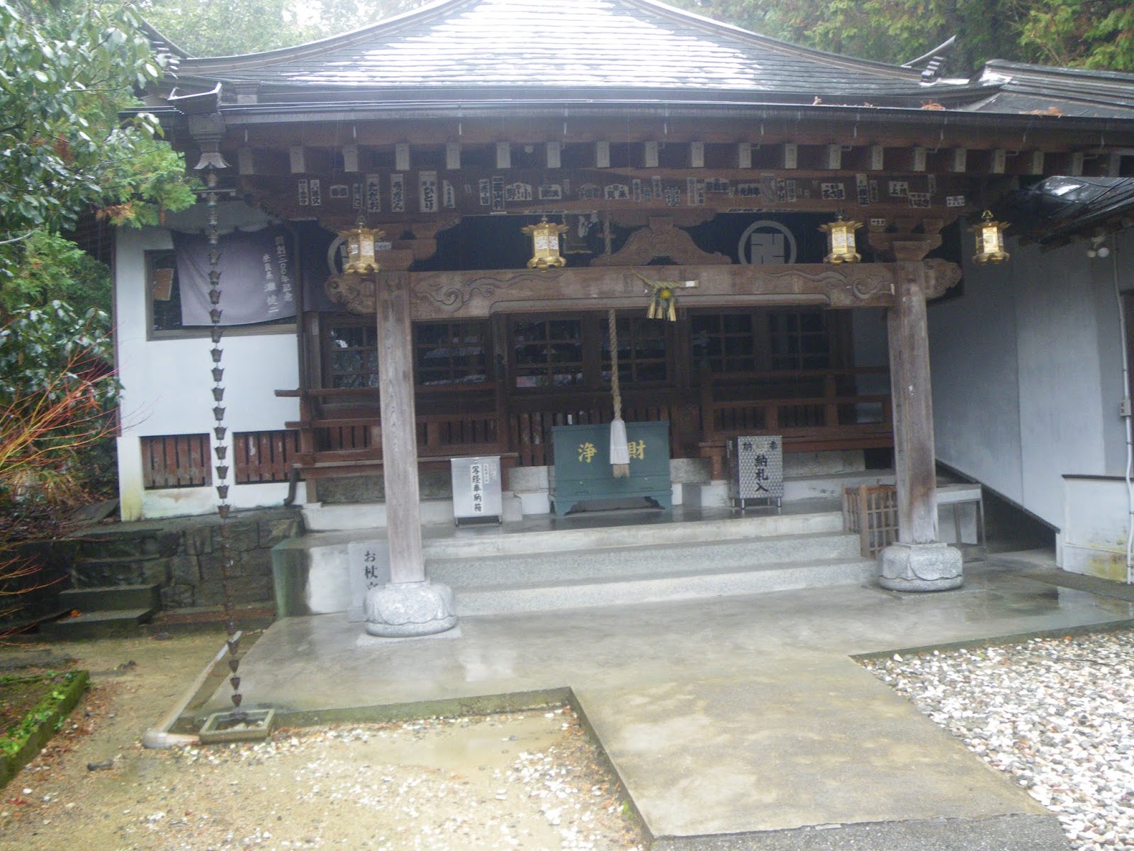 正面に本堂。コンクリート造りのお堂に木に銅葺きの屋根。結構落ち着いた造り。Wikipediaには「徳島県板野郡上板町にある高野山真言宗の寺院。温泉山(おんせんざん)瑠璃光院(るりこういん)と号する。本尊は薬師如来。大師堂前から湧き出る宿坊の温泉とラジウム鉱泉入りの薬湯も有名である。