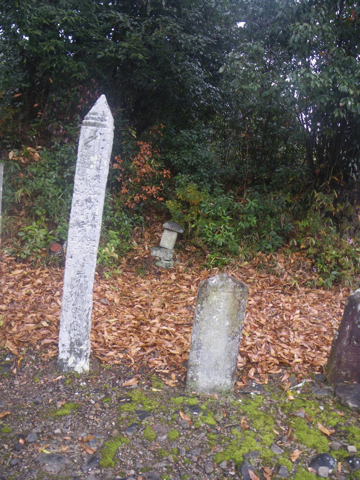旧路分岐点に3基の標石