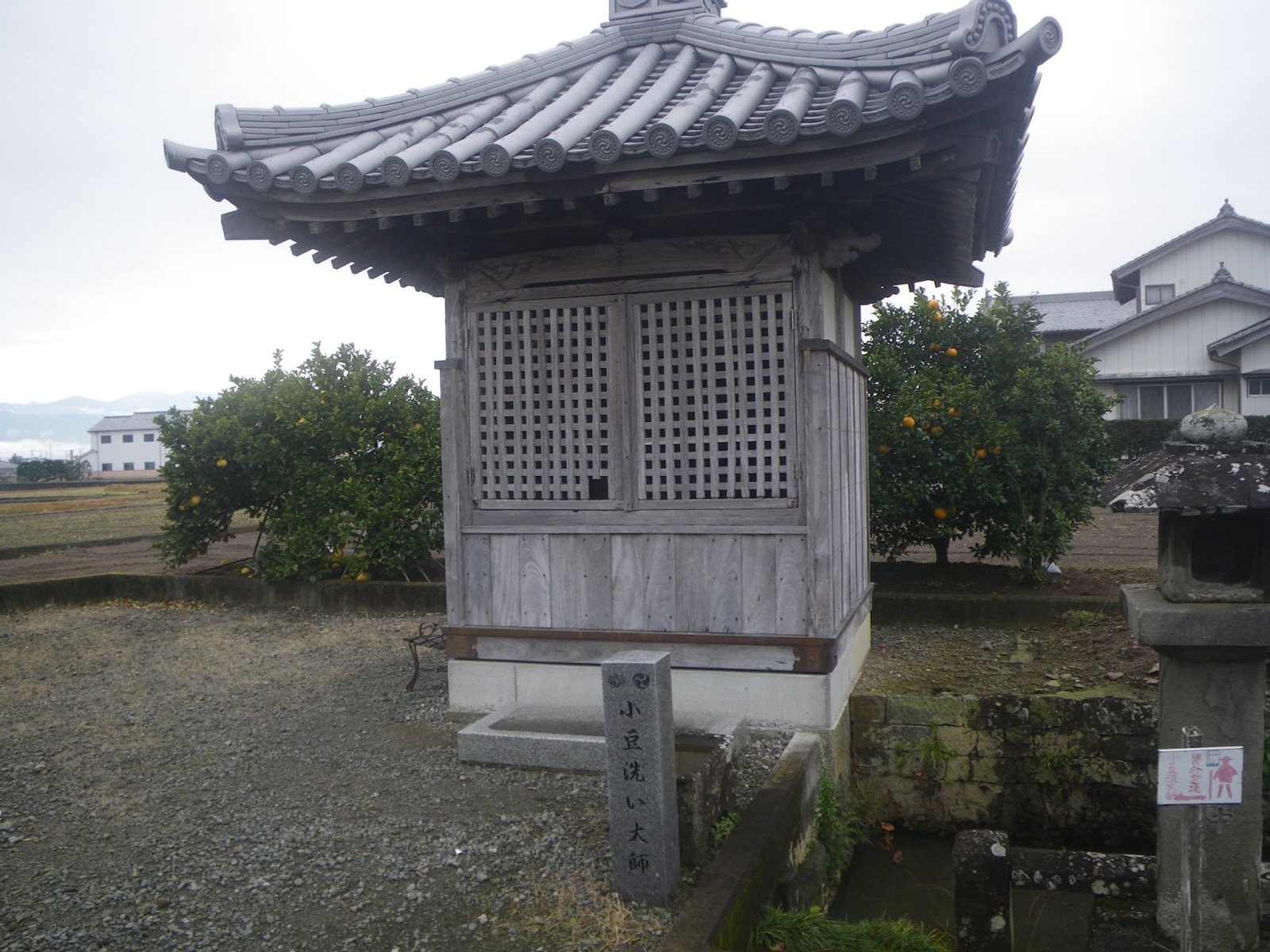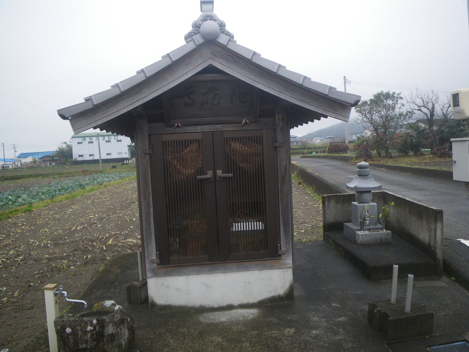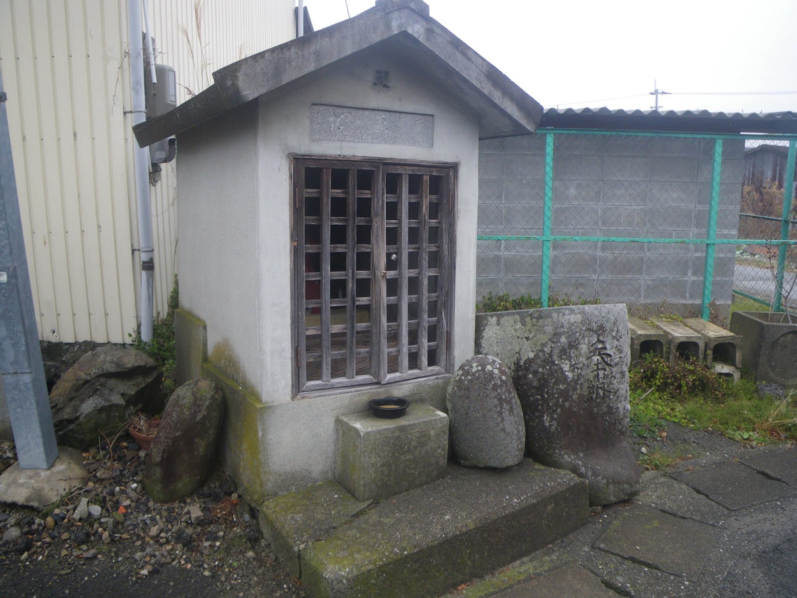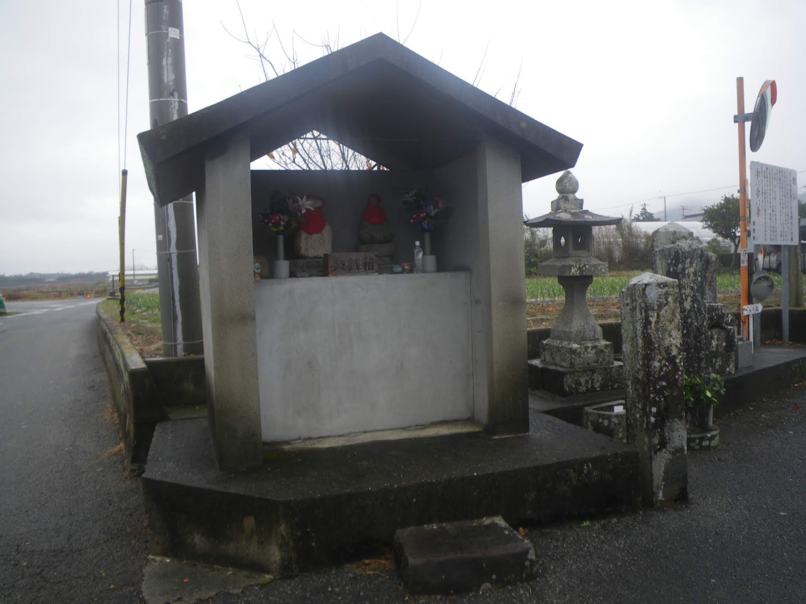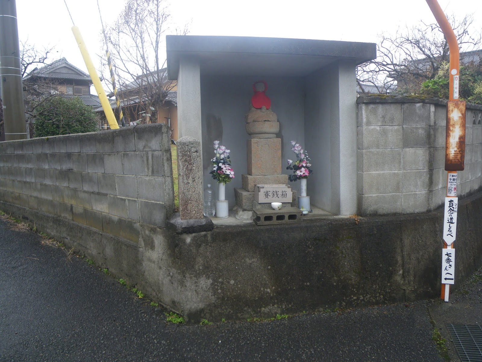遍路道はクロスする県道139号を北進し、最初の四つ辻を左折し西進。道なりに進むと四つ辻角、ブロック塀に囲まれた地蔵堂と標石がある。