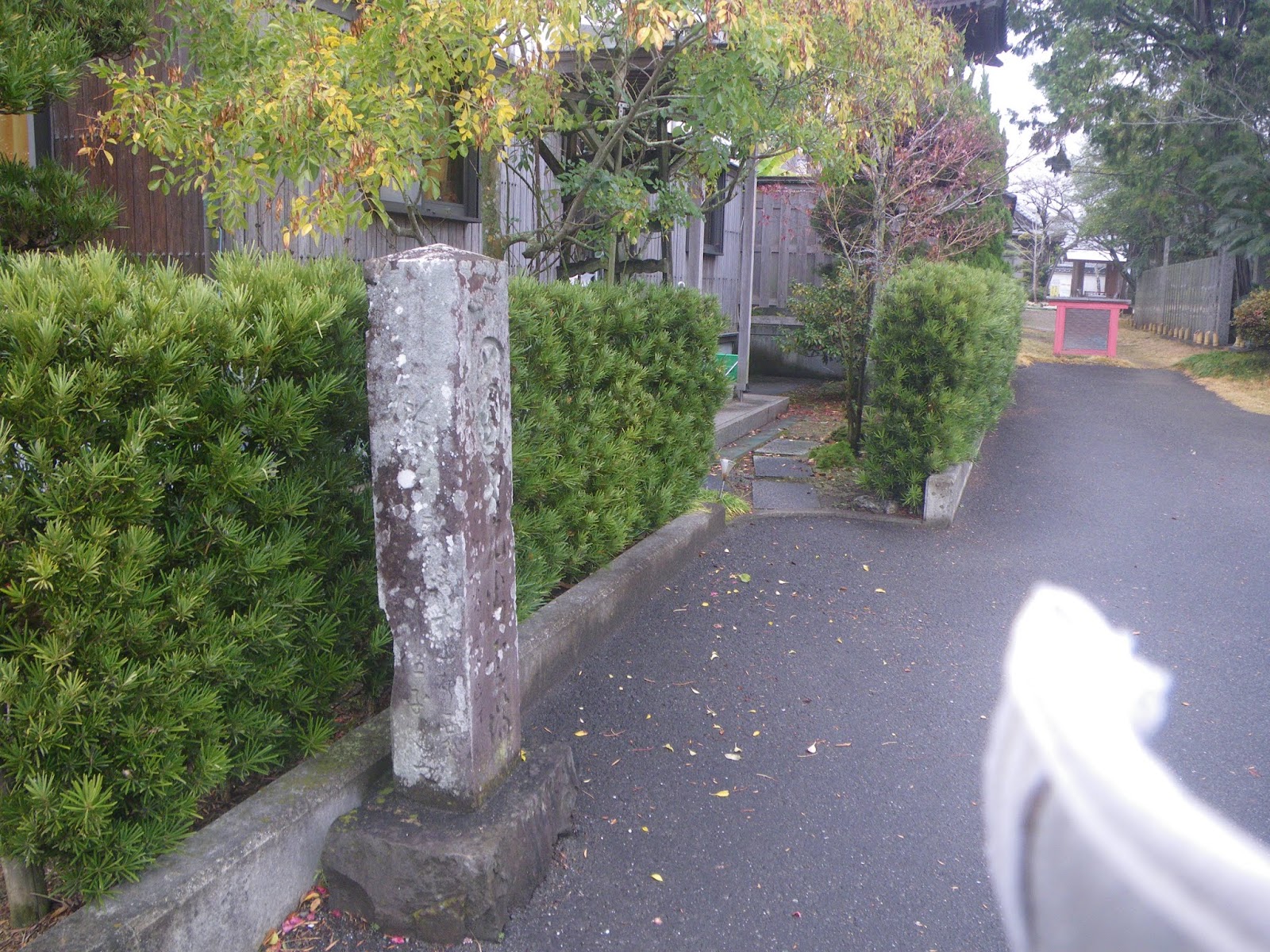 左折するとお屋敷の塀の前に大きな石碑。3mほどもあるだろう。手印と供に「ふじ以寺道」と刻まれる。