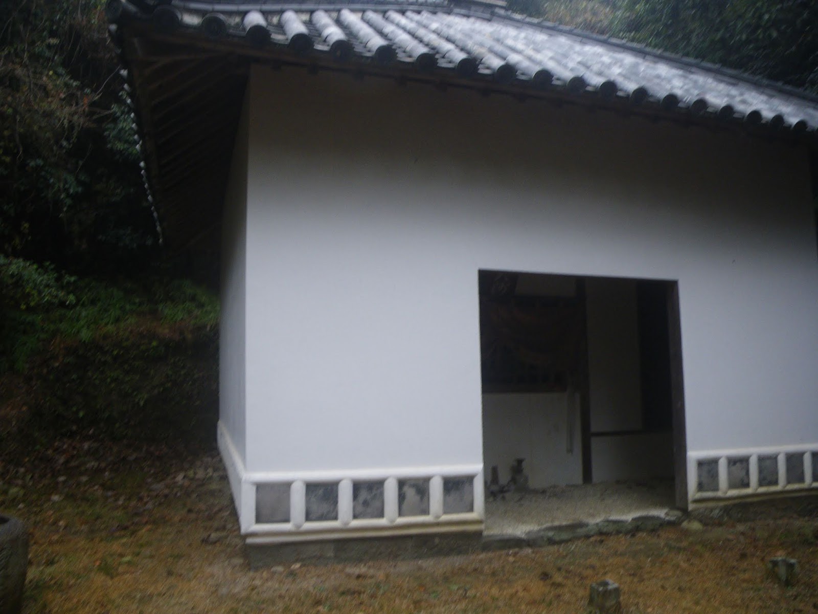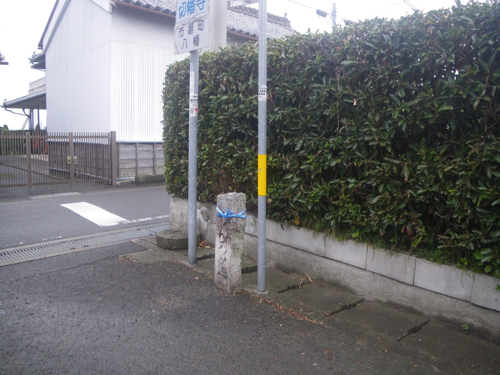飯尾川を渡ると、ほどなく道の右手に標石。風化が激しく文字は読めない。ここが分岐点では、と右折し県道を離れ南にすすむ。左手に立派な白壁の蔵。