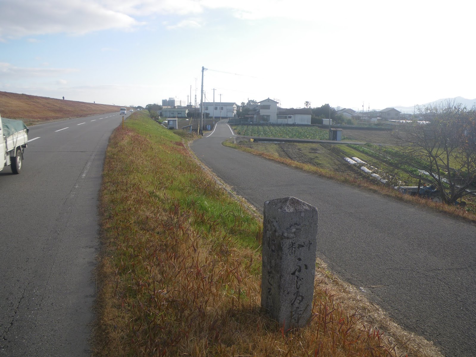 古い標石に従えば、遍路道は分岐点を左に入り粟島の渡で吉野川南岸に進むことになるが、現在その渡しも橋もない。「四国のみち」の「従是藤井寺 5.9粁」の指示に従い分岐点を右に進む。