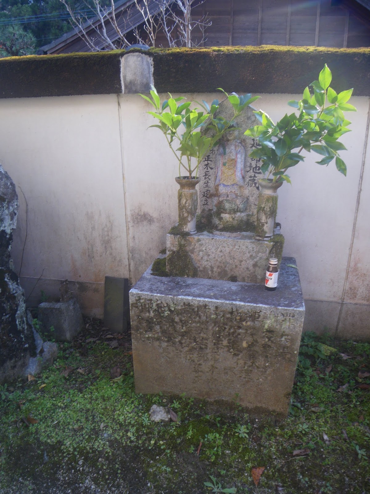 尊像自体は特段のものではないが、台石に刻まれた文面が特徴的。「寺院城砦焼討指揮謝罪 全阿波罹災僧侶民衆兵 士御霊位結集追善菩提 長曾我部軍侍大将 正木修理亮 外正木家一門 昭和五十二年」と記される。