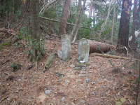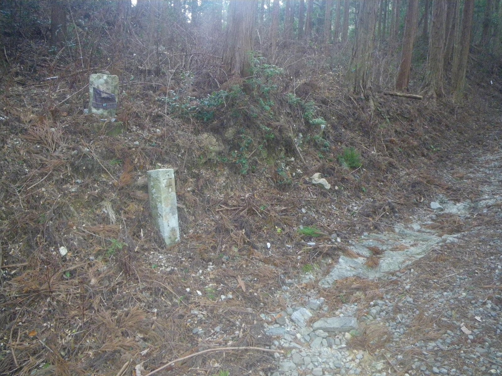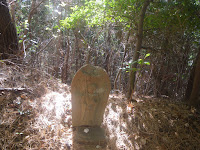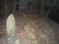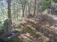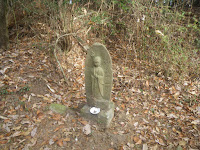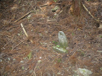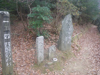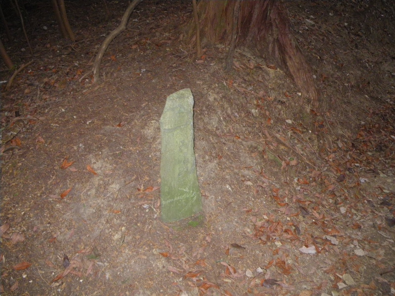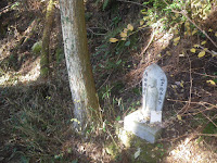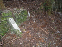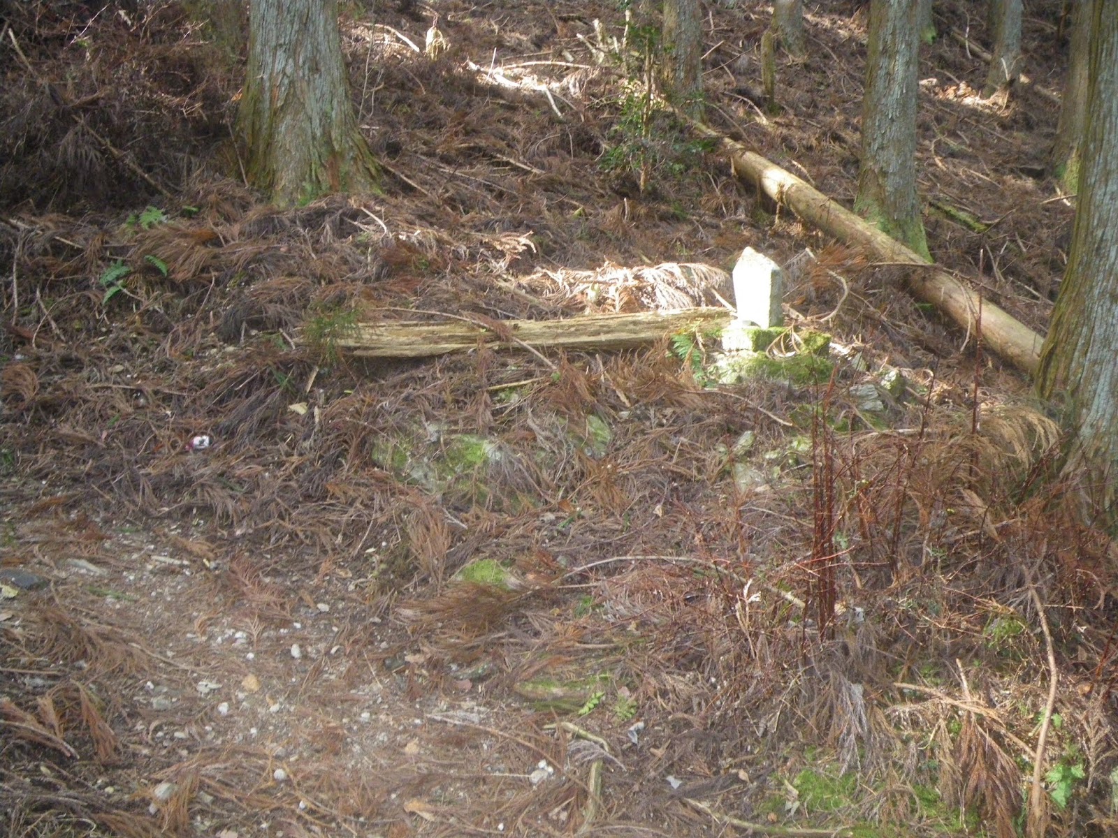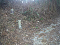 「山与 三十八丁」(午前11時14分)を越えると遍路墓らしき石柱に出合う(午前11時16分)。