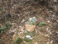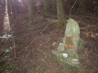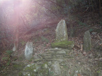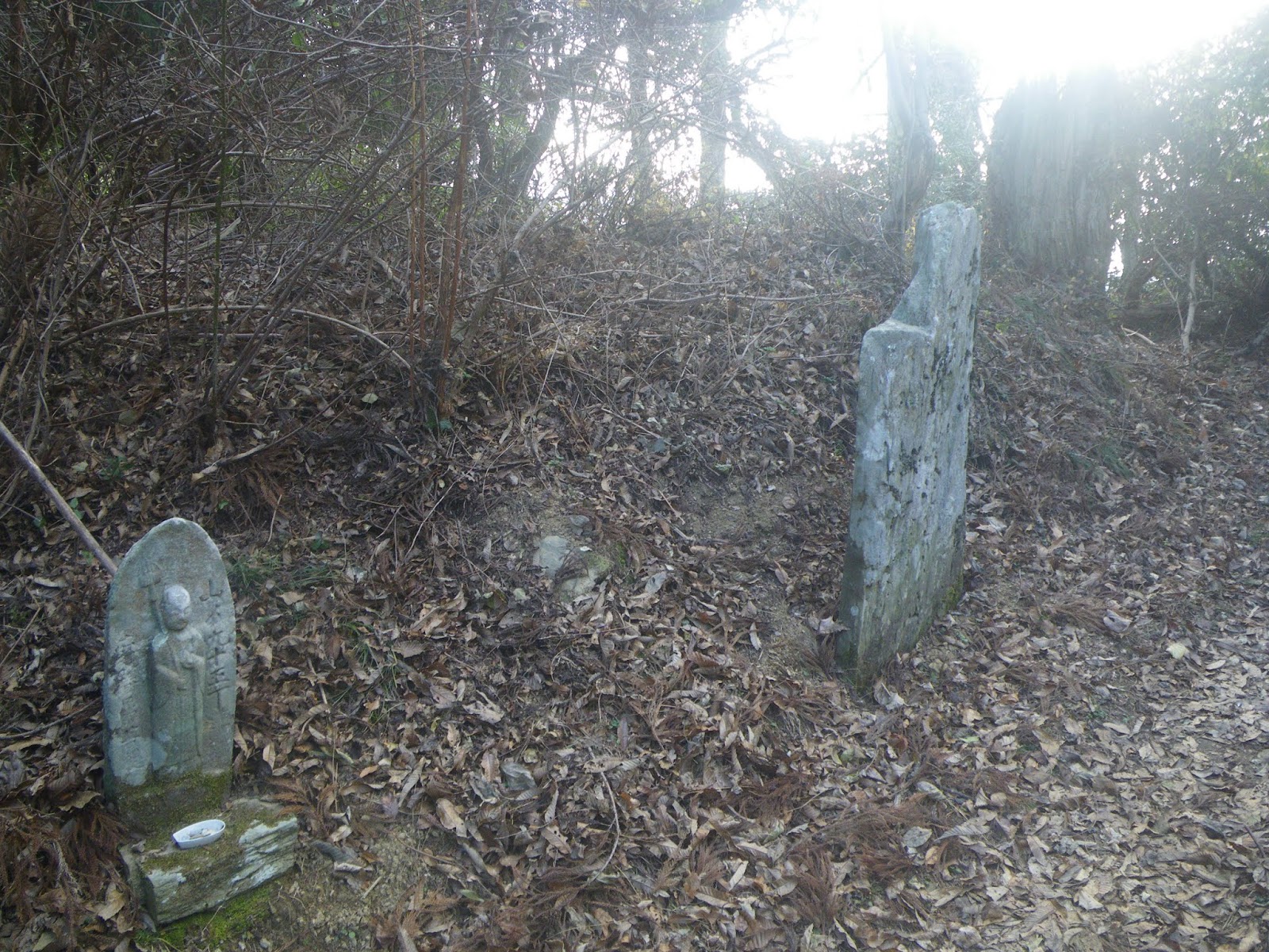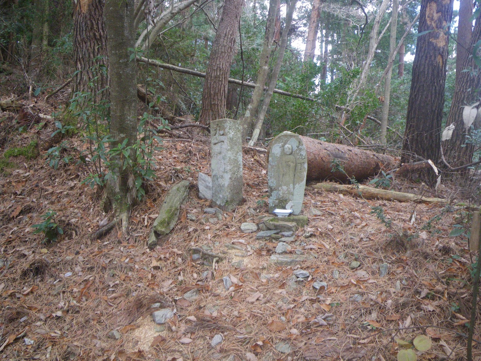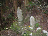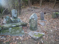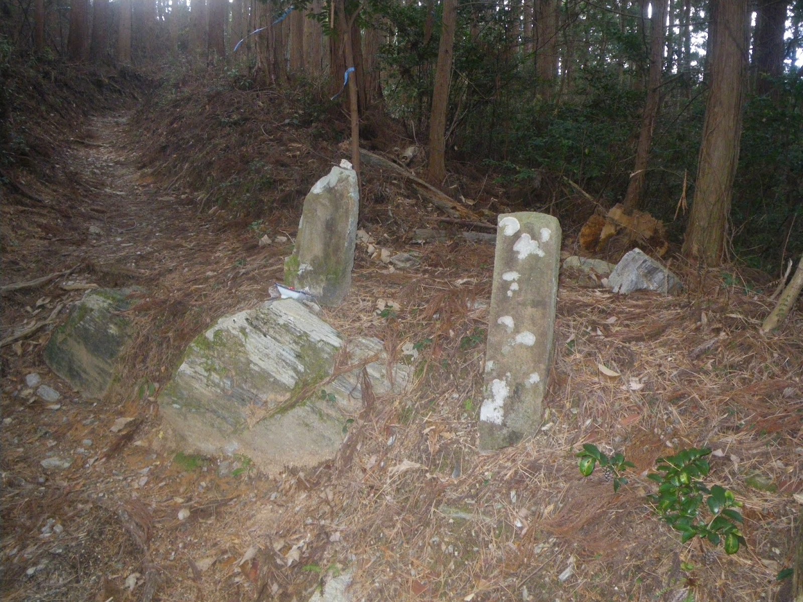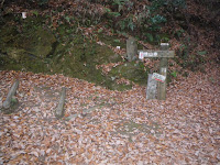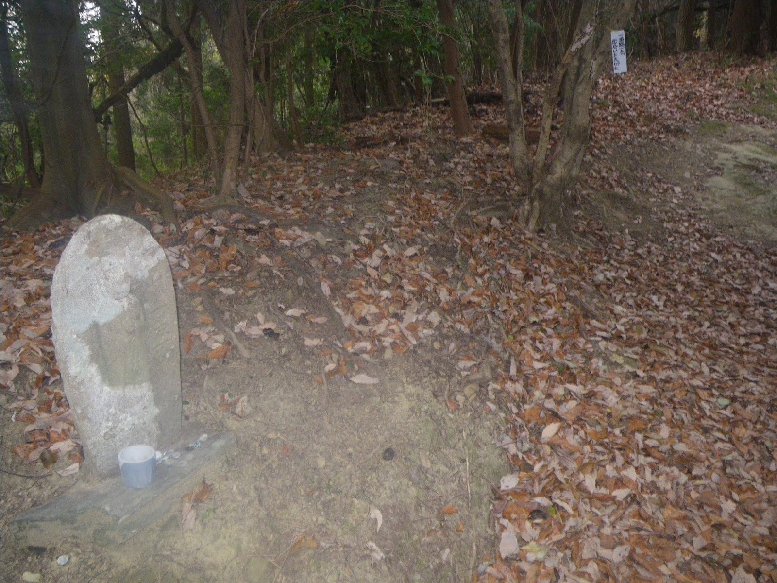 「山与 三十八丁」(午前11時14分)を越えると遍路墓らしき石柱に出合う(午前11時16分)。