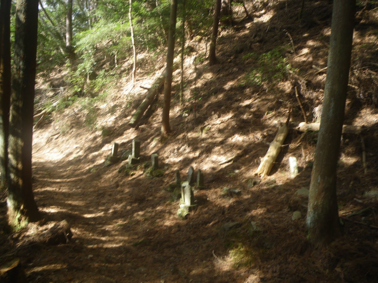 「豫州舟木村」などと刻まれる遍路墓が道傍に6基並ぶ(午前11時39分)。この焼山寺道には結構な数の遍路墓が祀られる。