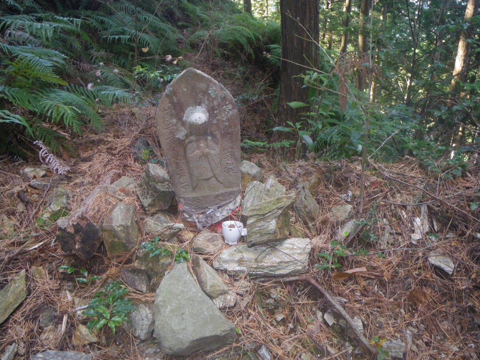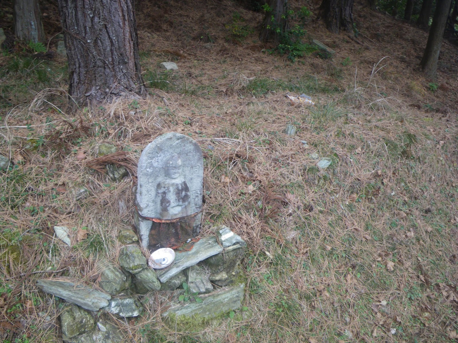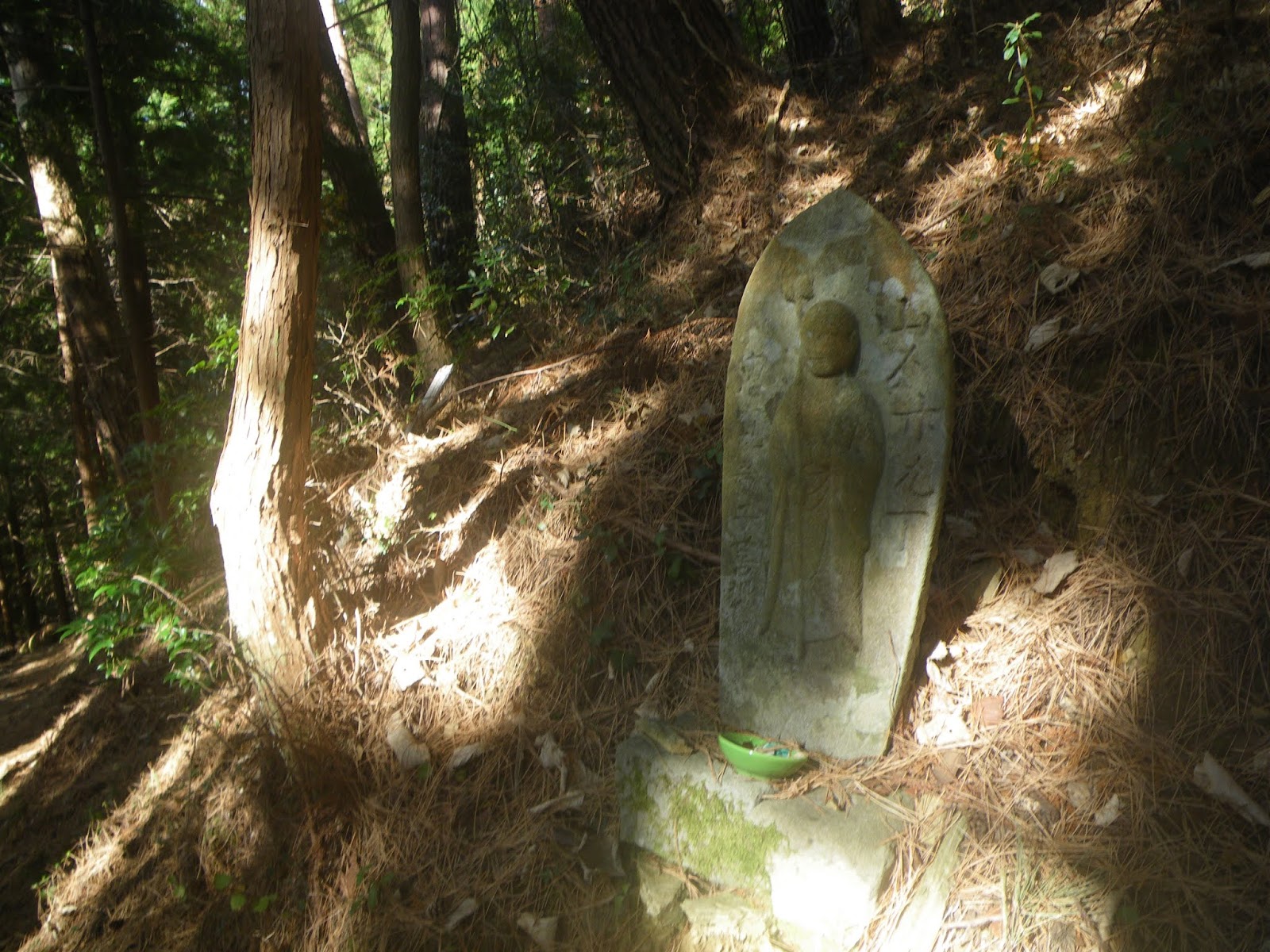 直ぐ先に2基の舟形地蔵が並ぶ。14丁と13丁だろう(午後12時51分)。数分進むと上部が完全に壊れた地蔵があった(午後12時55分)。