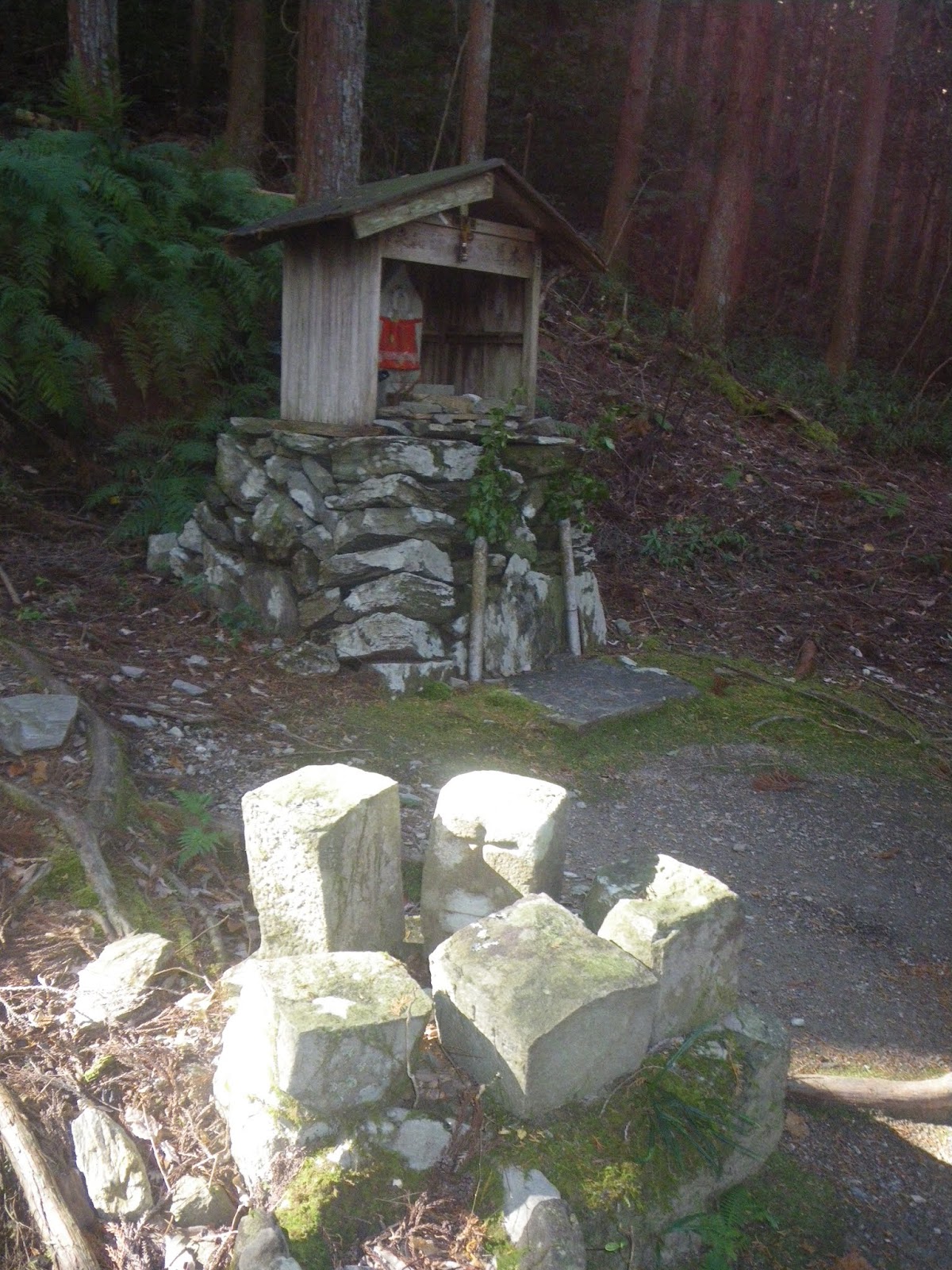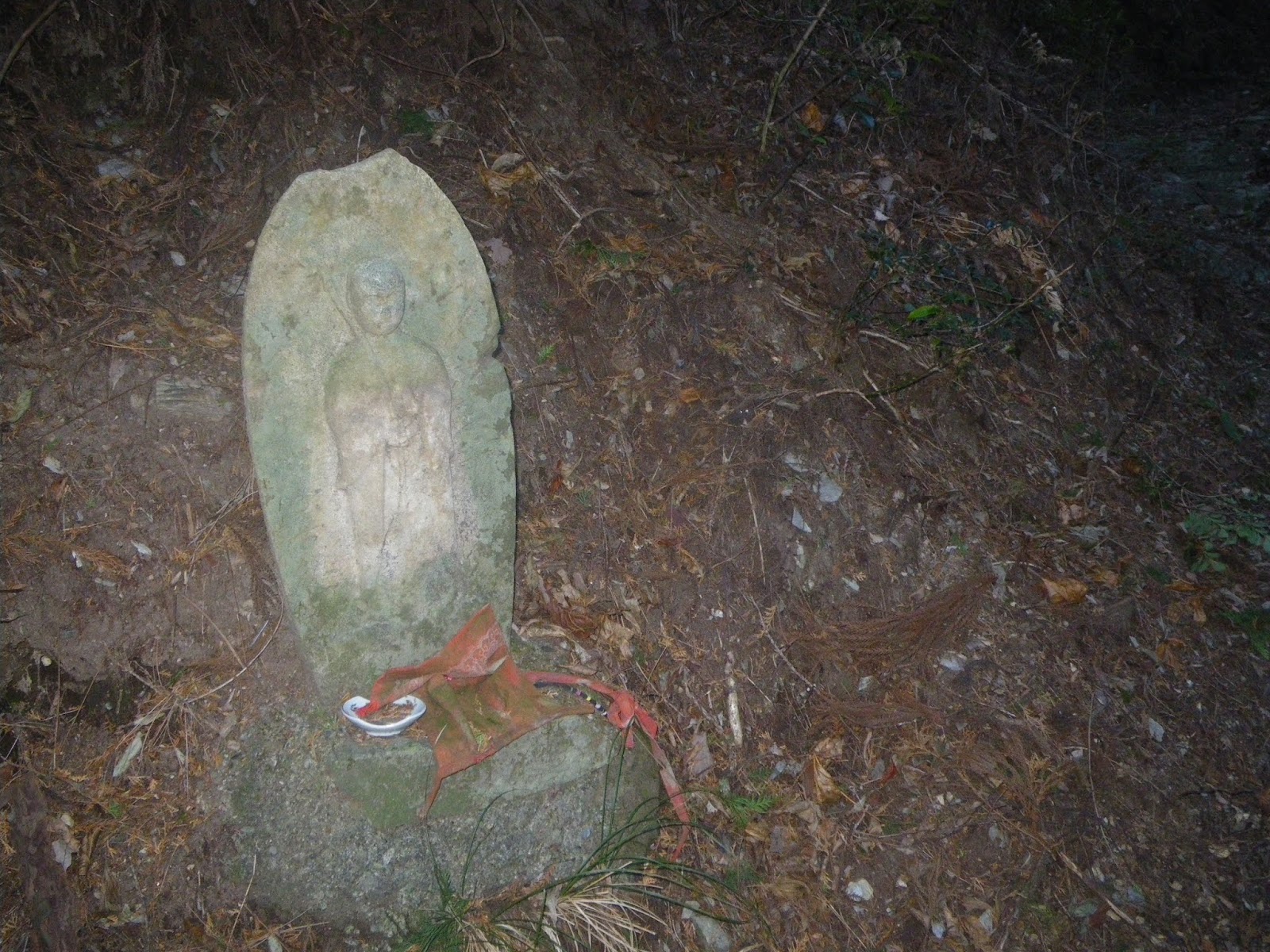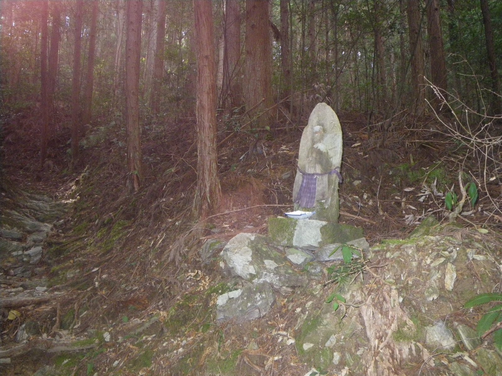 直ぐ先に2基の舟形地蔵が並ぶ。14丁と13丁だろう(午後12時51分)。数分進むと上部が完全に壊れた地蔵があった(午後12時55分)。