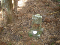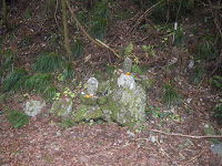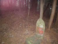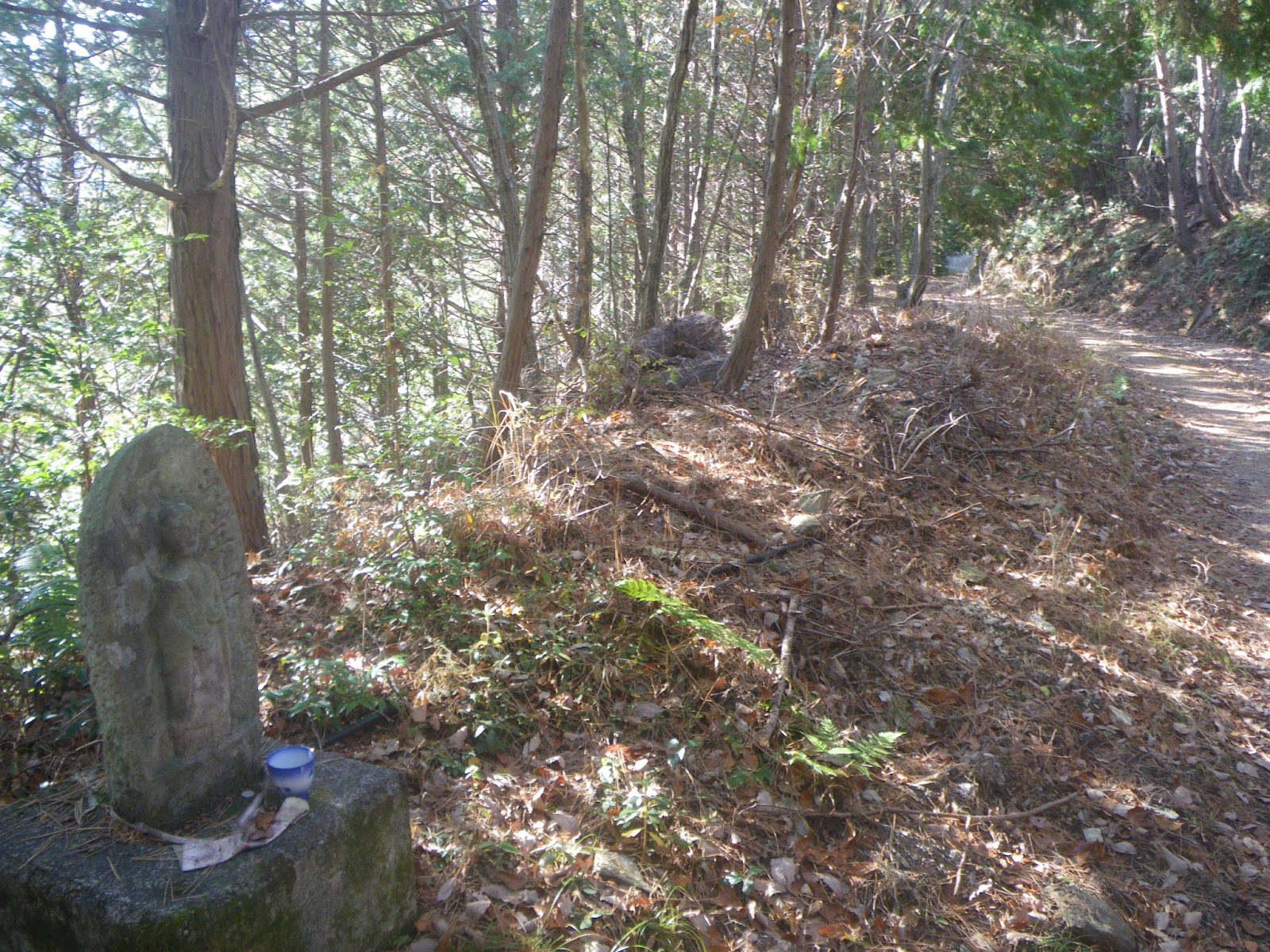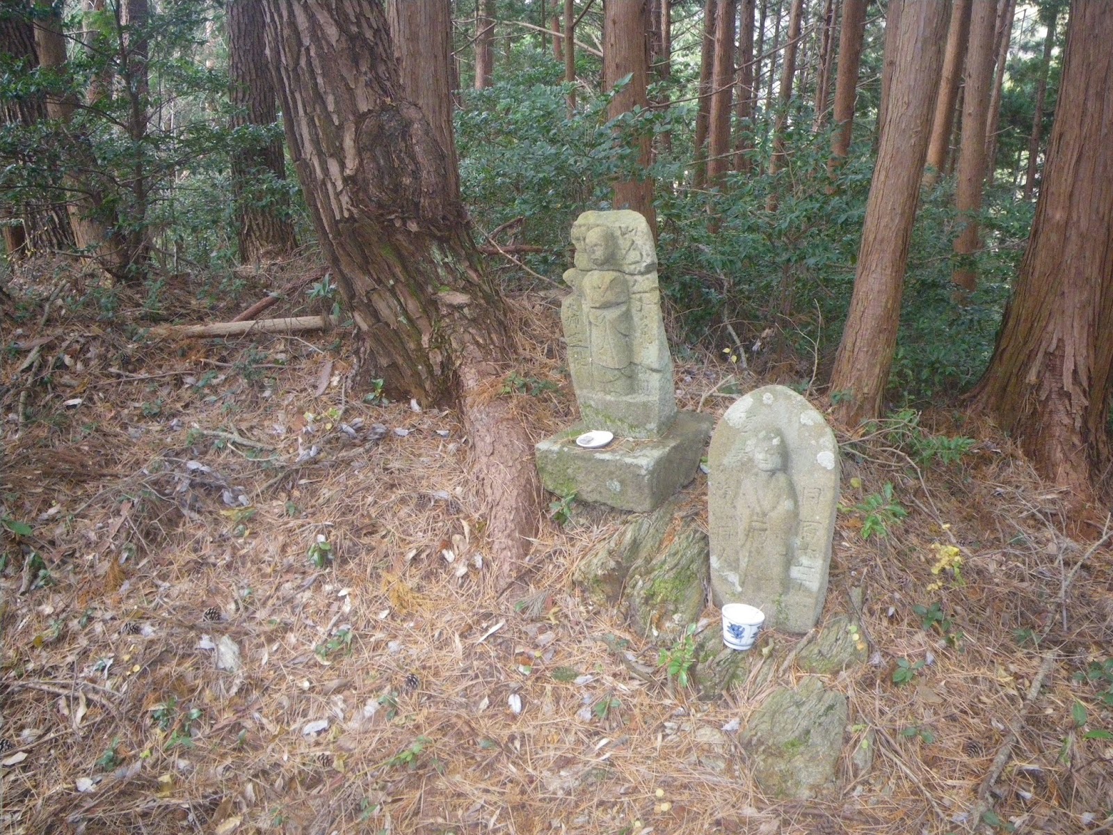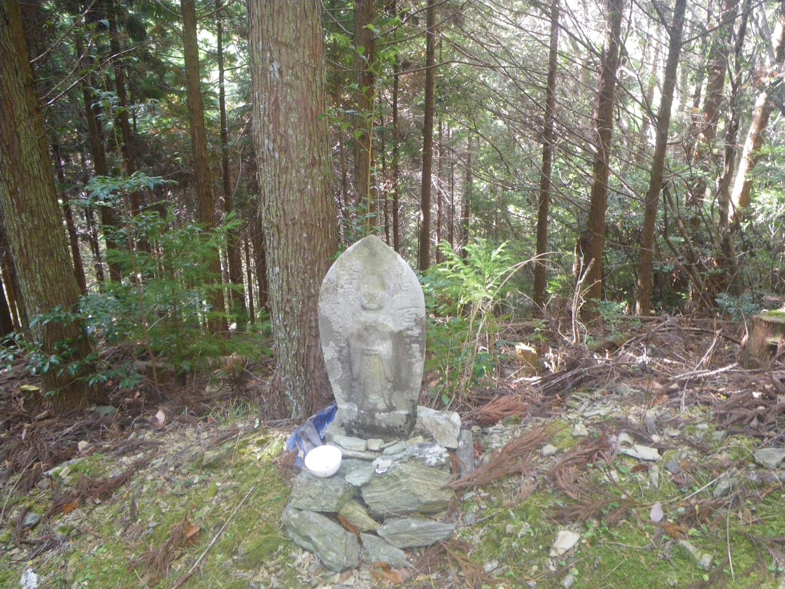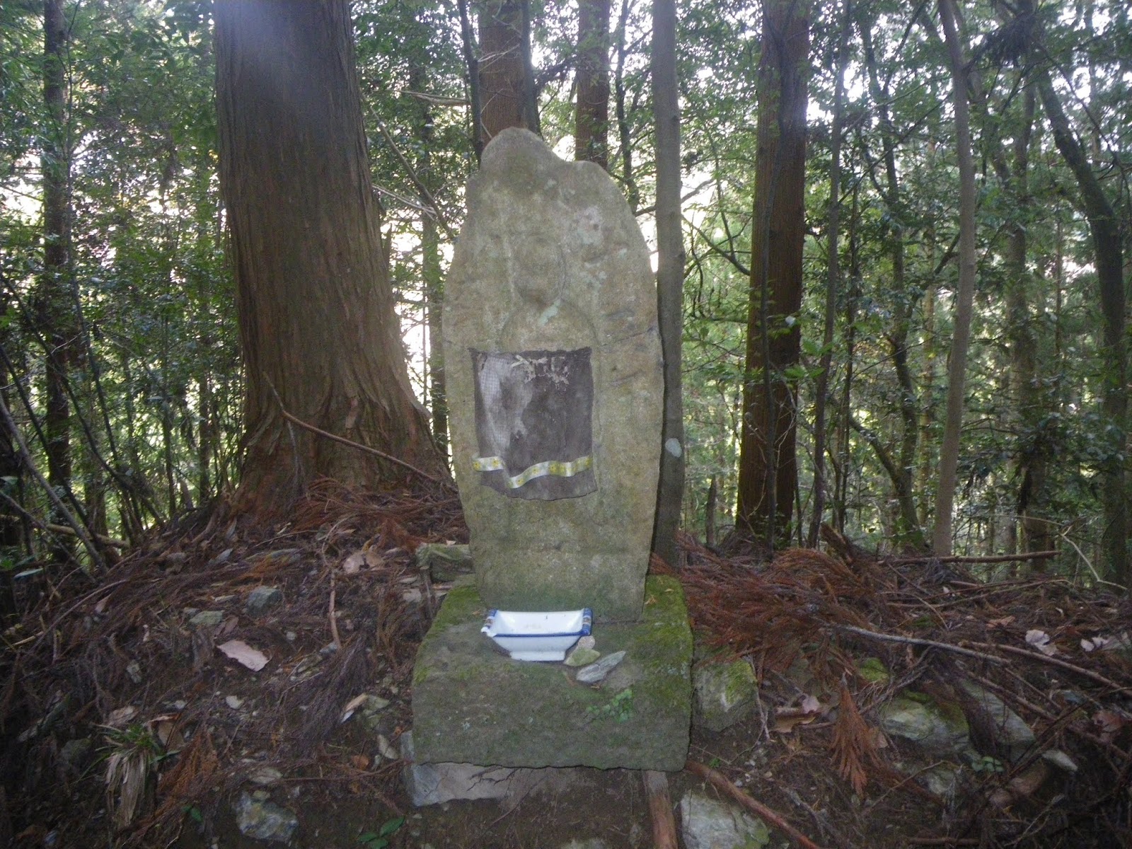 林道を進むと直ぐに舟形地蔵丁石が2つ続く(午前10時23分、10時27分)。共に摩耗が激しく丁数は読めない。