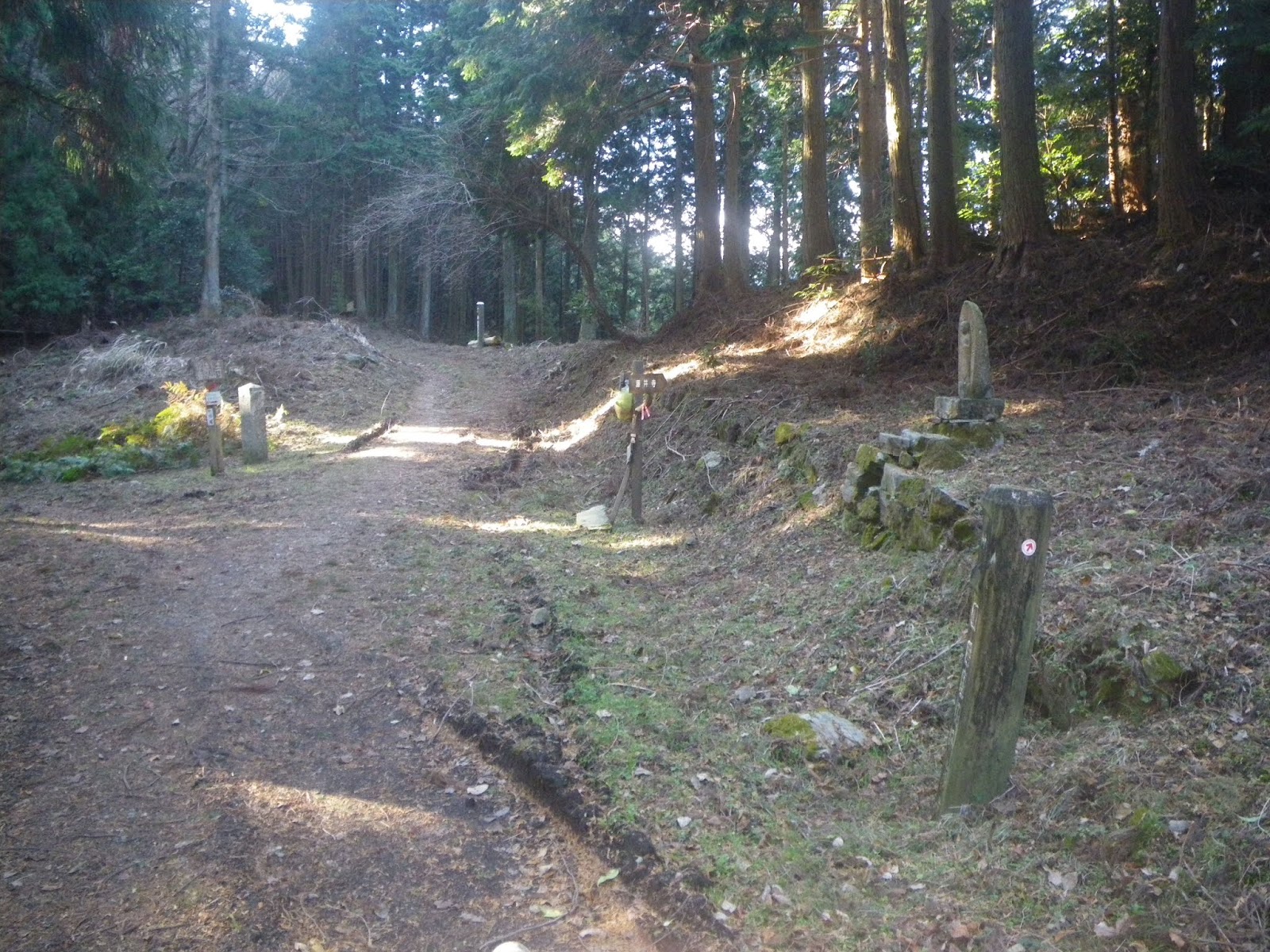 県道245号の鞍部からおよそ2キロ弱。比高差280mほどを1時間弱で歩いてきた。