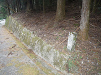 山門まで戻り石段下に「大日寺 22.7粍」を刻む標石があり、右を示す。指示に従い石垣に沿って道を進む。ほどなく倒れた角柱標石(午後2時28分)。「二丁」と刻まれる。