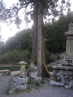 遍路墓から2分ほどで石段が見える。四十二段の石段を上ると石の玉垣に囲まれた大杉が立つ。一本杉庵(浄蓮庵)に着いた。