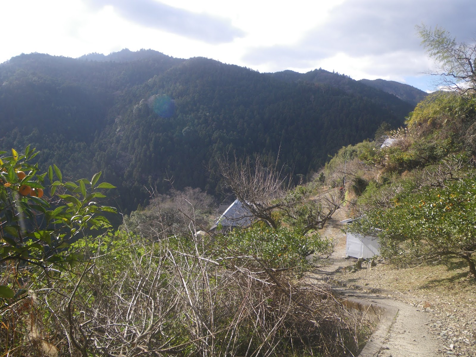 これで第二の峰越えを終える。標高480mほどの県道245号から標高750mほどの一本杉庵まで上り、そこから標高430mほどの左右無内集落まで下ってきた。上り比高差270m、下り比高差320mほど、4キロ弱のアップダウンをおおよそ2時間強で歩いた。藤井寺を出ておおよそ5時間かかった。ほぼ計画通り。