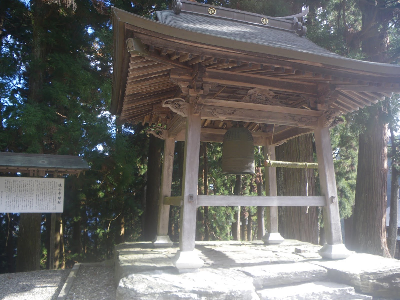 Wikipediaには「焼山寺(しょうさんじ)は徳島県名西郡神山町にある高野山真言宗の寺院。摩盧山(まろざん)正寿院(しょうじゅいん)と号する。本尊は虚空蔵菩薩 寺伝によれば大宝年間(701年 - 704年)、役小角(役行者)が開山し庵を結び蔵王権現を祀った。のちに空海(弘法大師)は、神通力を持ち火を吐いて村人を襲う大蛇がこの山に棲んでいることを聞き退治に向かった。大蛇は全山に火を放って妨害したので摩盧(水輪)の印を結びながら進むと、山頂の岩窟に閉じこもって抵抗した。そこで虚空蔵菩薩や三面大黒天に祈願するととうとう大蛇を岩窟の中に封じ込めることができたため、そのお礼に虚空蔵菩薩を刻んで本尊とし一寺を建立したという。