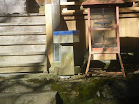 その先に小祠(午後1時)。薬師堂。お堂対面に集められた石柱の中に「十一丁」と刻まれた石柱もあった。