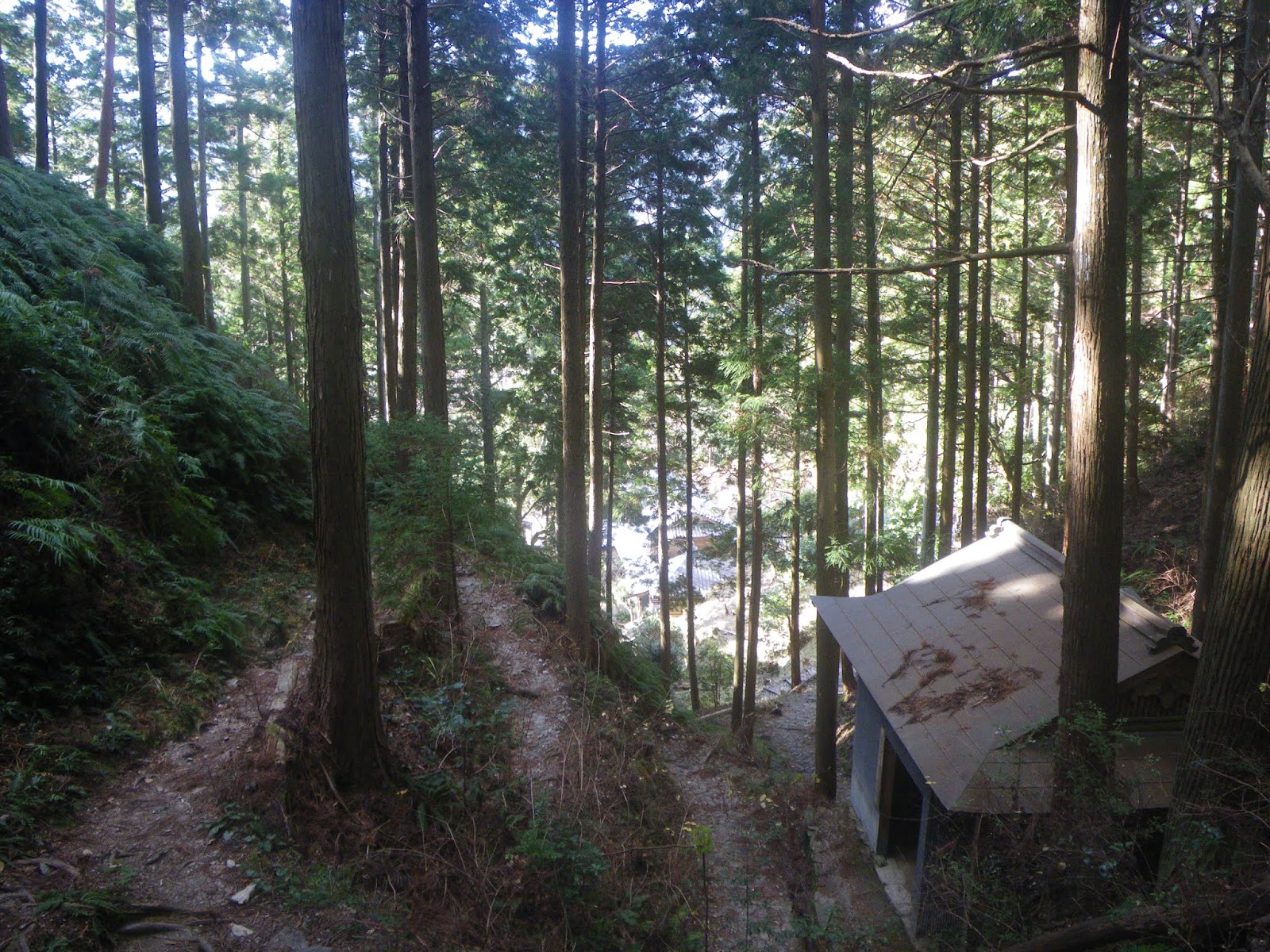 標高480mほどの県道245から一本杉庵の建つ標高750mピークまで上り、そこから急坂を標高430mの左右内集落へ下る