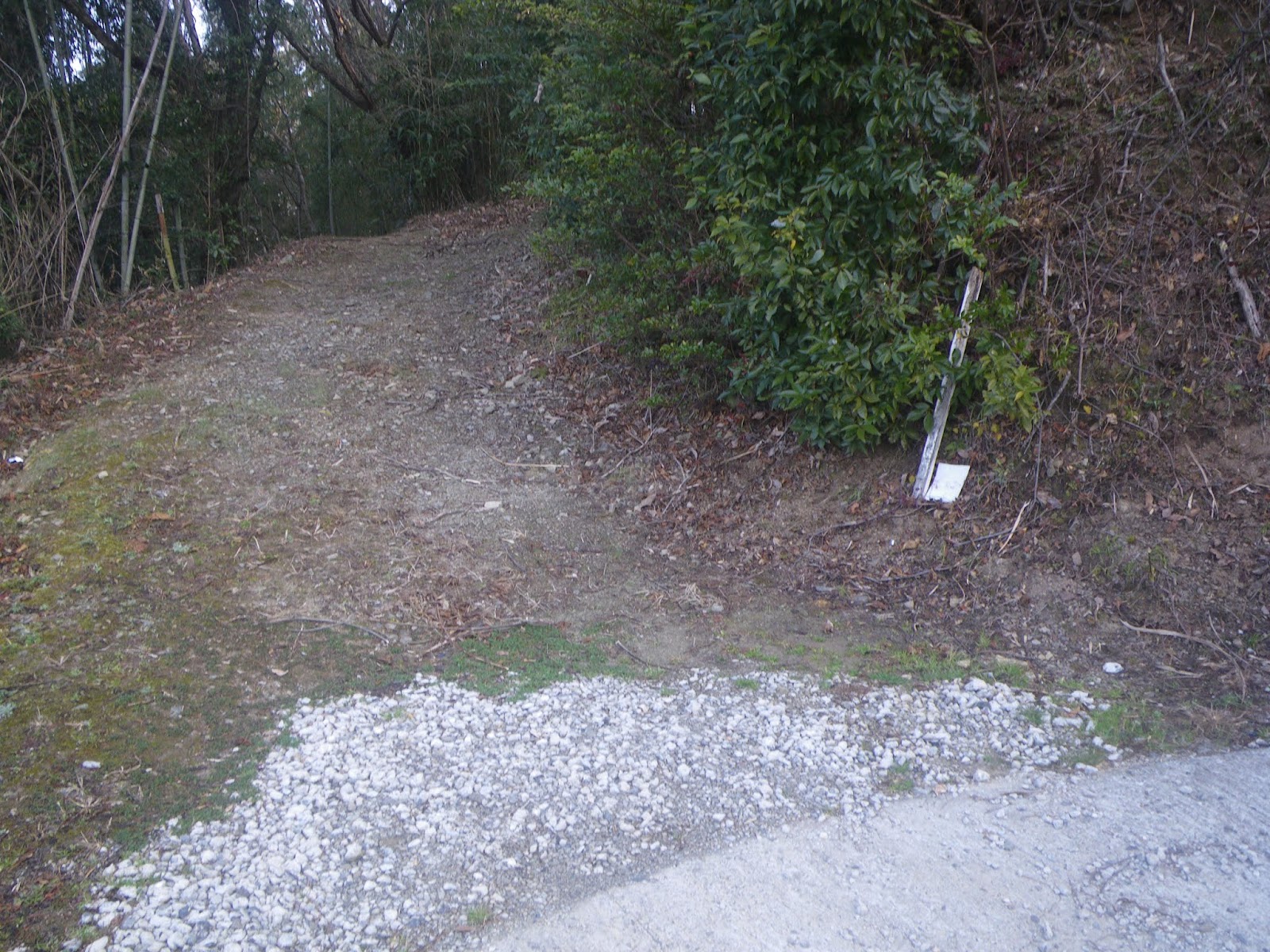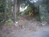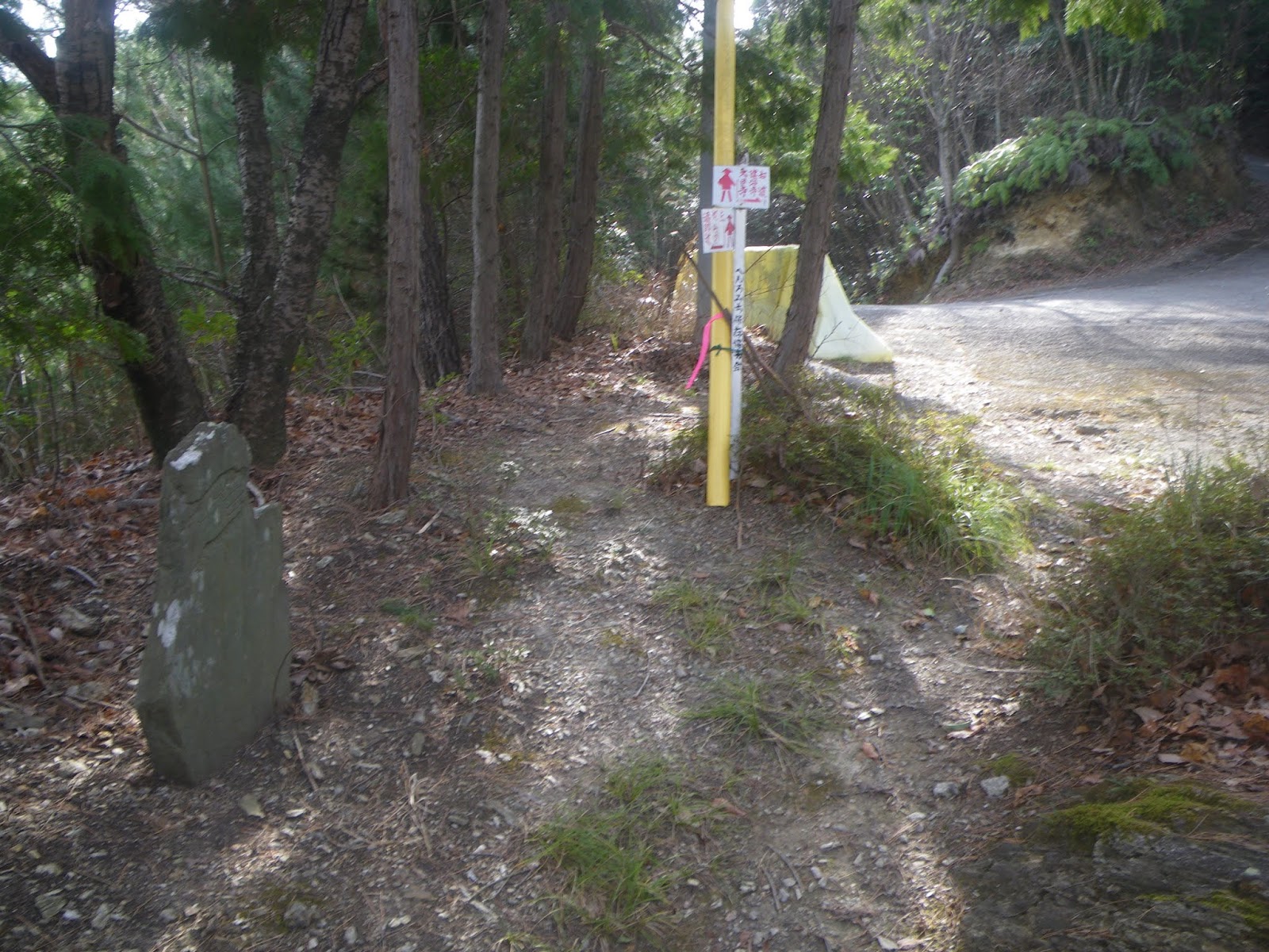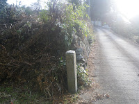 2基の標石の先で舗装路から離れ山道に入る